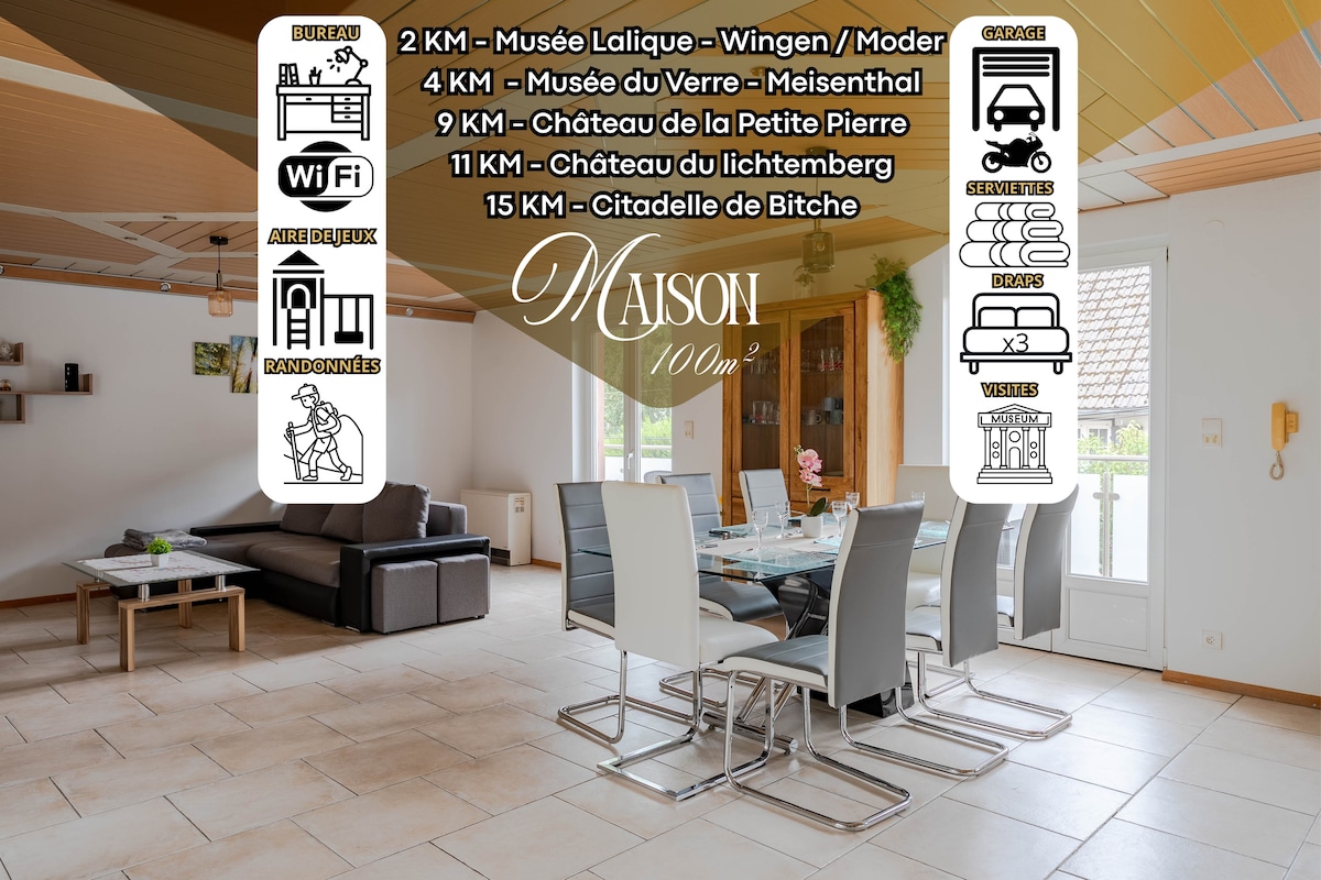 Offrez-vous une parenthèse de tranquillité et d'émerveillement dans un ancien atelier de boulangerie entièrement réhabilité en gîte familial tout confort. Idéalement situé au cœur du Parc National des Vosges du Nord, notre gîte offre aux voyageurs la possibilité de se ressourcer en pleine nature en explorant les sentiers balisés à pied ou à vélo. De plus, les amateurs d'art et d'histoire pourront découvrir des sites emblématiques à proximité tels que le CIAV à Meisenthal ou la Ligne Maginot.