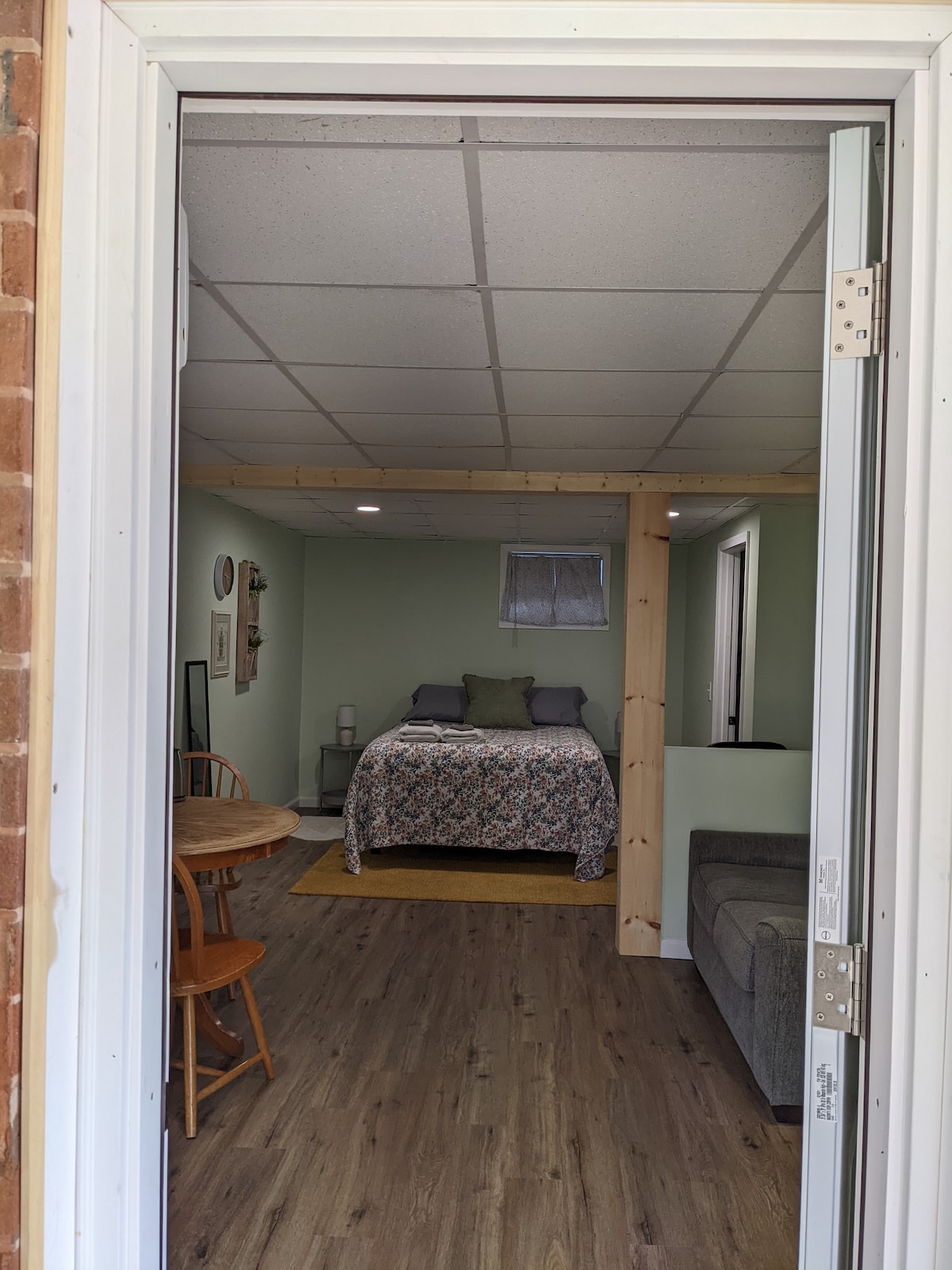 Ruum on hiljuti renoveeritud eraldi sissepääsuga keldristuudio. Sinu jaoks on olemas parkimiskoht ja valgustatud tee vasakule, mis viib stuudiosse. Stuudios on lai kaheinimesevoodi, vannituba vanni ja dušiga ning riietusruum, mida mõned kasutavad kontoris. Köögis on enamik asju, mida vajad. Me elame ülakorrusel, nii et kuuled samme ja köögi tegevust. Aed on hiigelsuur ja tarastatud - ideaalne lemmikloomadele. Jalutuskäik Lane 'i staadionile kestab ainult 15 minutit!