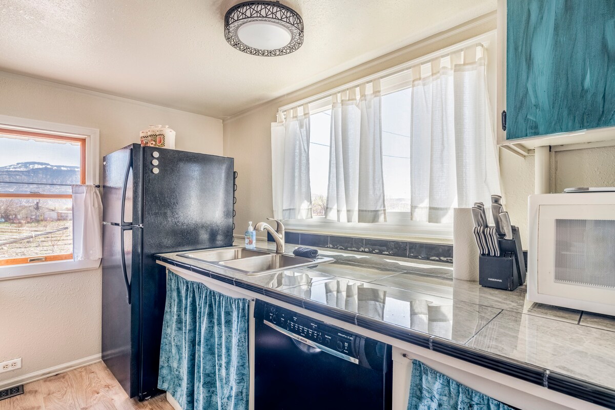 See äsja ehitatud „roheline“ kodu on segu kaasaegsetest ja maalähedast stiilist ning inspireerib sind kindlasti nautima kõiki vabaõhutegevusi, mida Grand Valley pakub. The Perfect Day Getaway house is located on a quaint farm within 8 minutes of world class hiking, mountain and road bikeing, and river rafting. See on suurepärane stardipunkt ka ühepäevareisideks Moabisse ja Grand Mesasse! See ehitati selleks, et maksimeerida lõunapoolset nähtavust ja vaateid Colorado rahvusmonumendile.