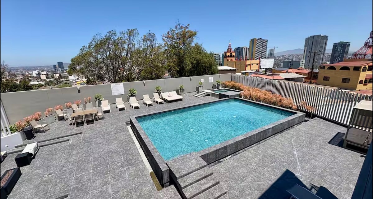 Descubre esta suite moderna ubicada sobre Av. Revolución, ideal para disfrutar Tijuana con estilo. Disfruta su balcón con vista panorámica, Netflix, cocina equipada y una alberca espectacular. Perfecta para estancias románticas o de trabajo, a minutos de restaurantes, bares y el cruce fronterizo.
