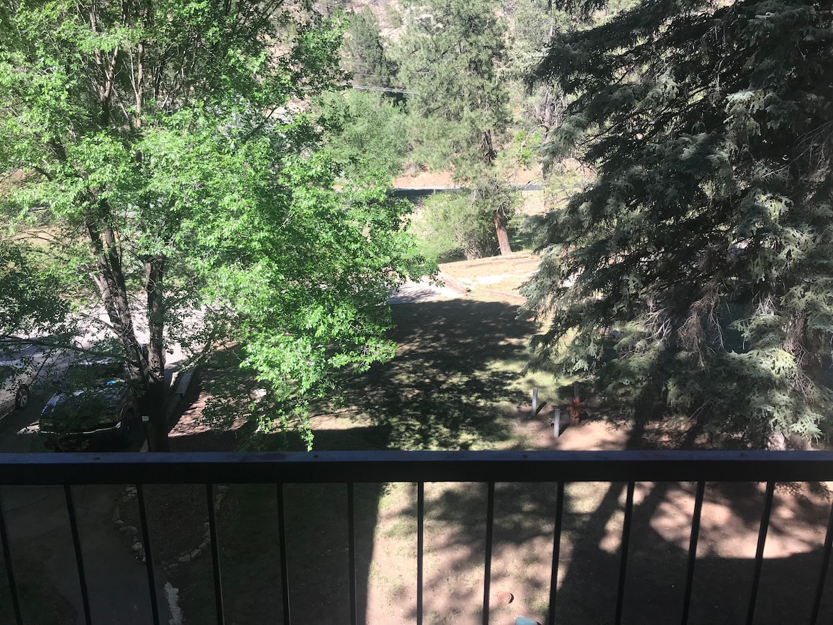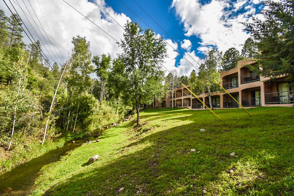 Enjoy peaceful mountain living with beautiful views, a creek in your back yard and plentiful wildlife without staying far from town. Mountain and city amenities in one place! This cozy romantic condo is close to the Inn of The Mountain Gods Resort and Casino and golf course, a beautiful lake with paddle boats, fishing, a hunting range, and also very close to the center of the beautiful mountain town of Ruidoso, NM. in the Lincoln National Forest. You will love it!