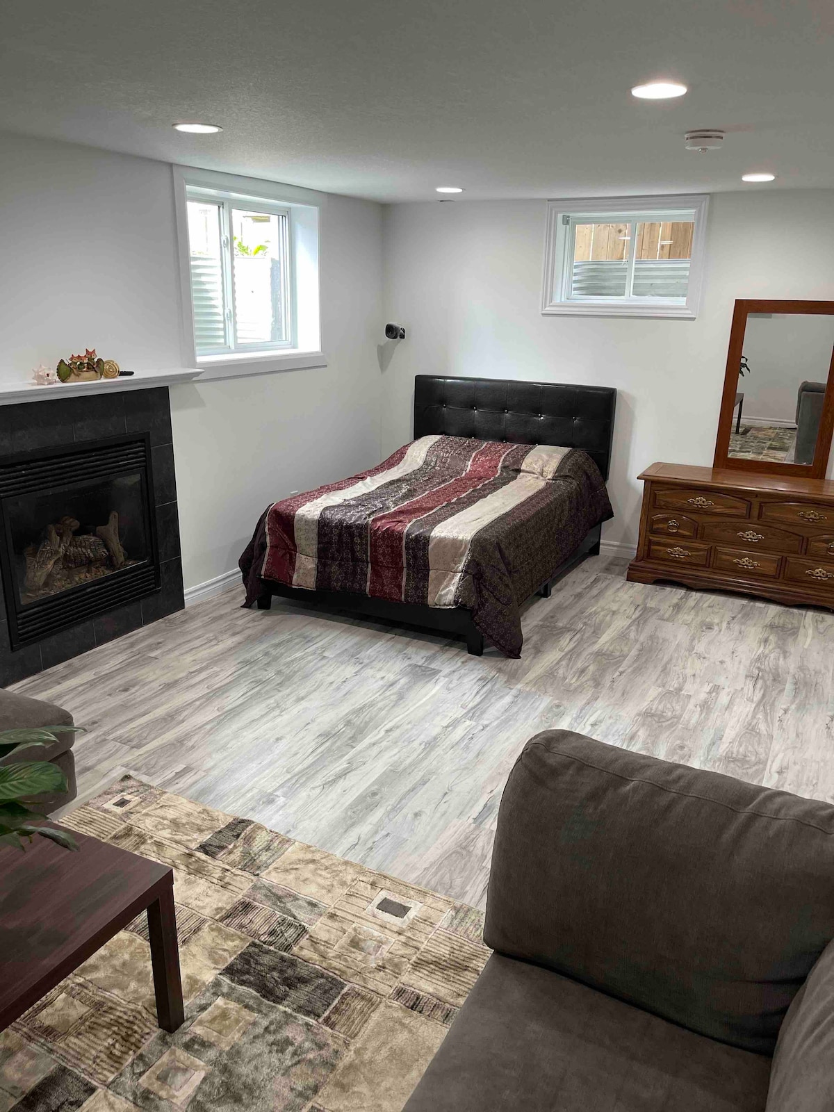 Renoveerisime hiljuti oma keldri, et luua stiilne, kaasaegne, hubane ja vaikne külaliskorter. Seal on külgmine sissepääs, mis avaneb otse trepile, mis viib sind üksuse juurde. Sellel on lukustuv metallist välisuks helikindluse ja turvalisuse tagamiseks. Üksus on kolme suure aknaga valgusküllane stuudiokorter, täisvarustusega köök, televiisori ja kaminaga istumisala, söögilaud, lai kaheinimesevoodi, garderoob ja oma privaatne vannituba viie jala pikkuse dušiga. Ulatusliku helikindlusega!