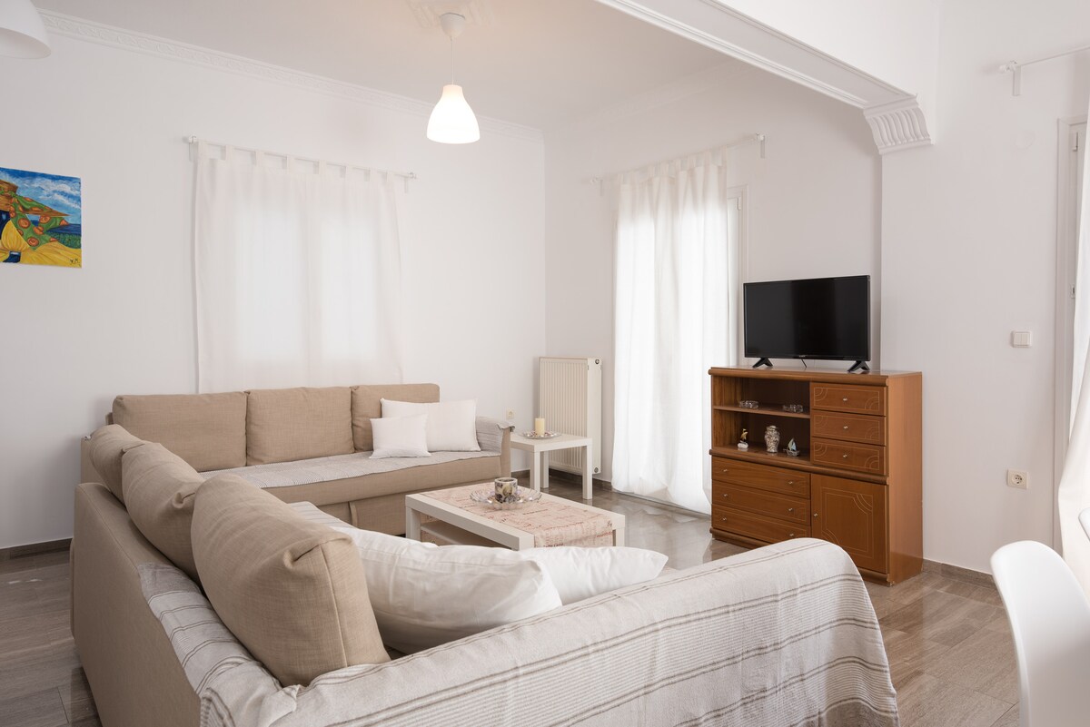 Avar 73 s q m korter, kus on kaks magamistuba, elutuba, täielikult varustatud köök ja vannituba, mis on kaunistatud heledates värvides ja avatud rõdule. See mahutab kuni 8 inimest ja sobib sõprade või perede rühmale, kes soovivad nautida oma peatumist Naxoses, ühendades üsna naabruskonna ja tegevused. Võimaluste hulka kuuluvad: 3 õhukonditsioneer, 3 lameekraaniga televiisor, anatoomilised madratsid,täielikult varustatud köök,pesumasin, vannimugavused.