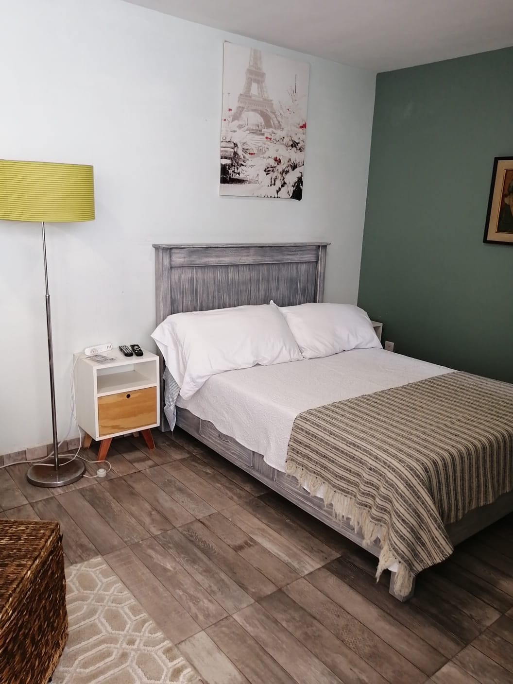 Ya no busques más. ahorra dinero con comodidad y seguridad Departamento de 1 recámara, con cama matrimonial, podría dormir una pareja, una cama individual alta que abajo tiene escritorio, o área de trabajo. Trastes para cocinar y para comer, ropa de cama toallas, papel de baño, etc. Ideal para una pareja y un niño o compañeros de trabajo. Si lo solicitan, se puede inclluir un colchón de aire para 2 por costo extra Clóset amplio, wifi. agua caliente 24/7 Ventilador, cable, Self check in.