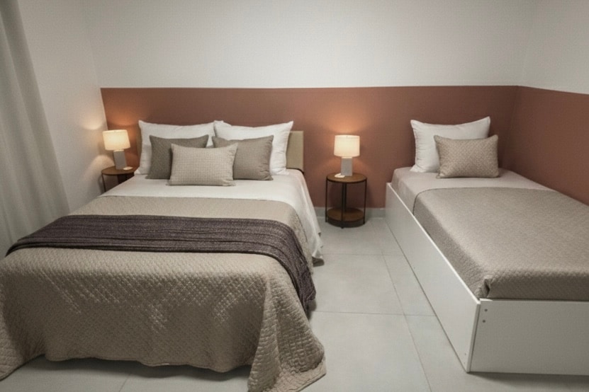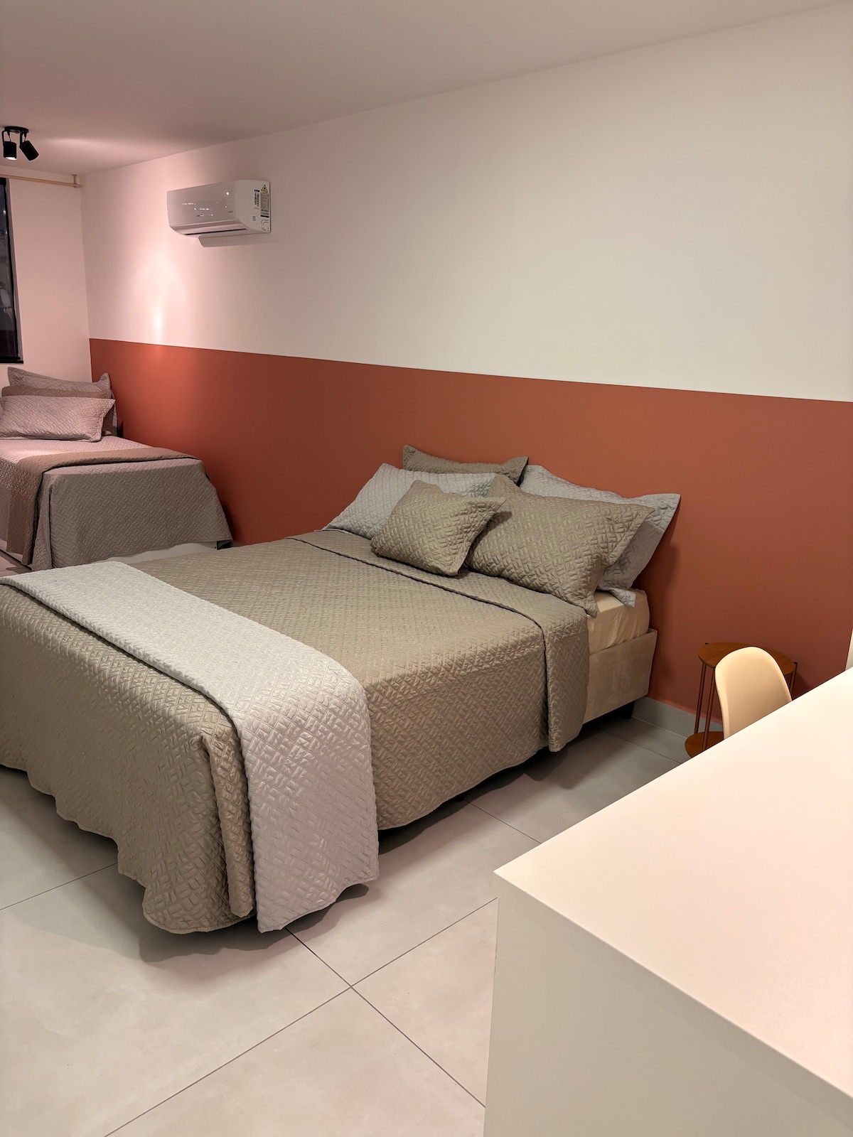 Suur korter perele, paaridele või ärireisiks. Seal on 3 magamistuba, kus on kliimaseade, linad ja suurepärase kvaliteediga rätikud. Kaheinimese sviit, veel üks kaheinimese magamistuba ja üks üheinimese magamistuba. Kokku 3 voodit. Voodites mahub mugavalt kuni 5 külalist. Kuni 7-liikmelistele rühmadele pakume lisamadratsit lisatasu eest 50 R$ inimese kohta öö kohta, mis on broneeringus juba seadistatud. 43-tolline teler, WiFi, täisköök, pesumasin, garaaž. Desinfitseeritud korter, 3. korrus, juurdepääs trepist