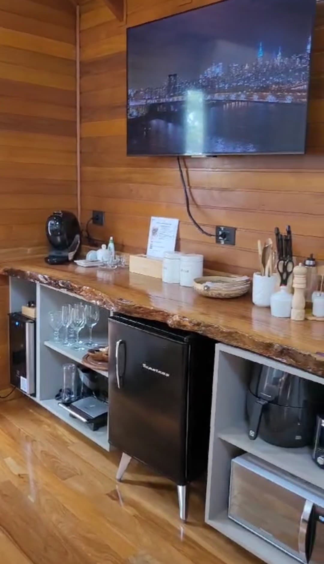 Hüdromassaažiga konteinermajas peatumine on erakordne ja toimub mälestuseks. Suurepärane asukoht isegi hästi metsastatud asukohas oleme vaid 400 m kaugusel kesklinnast. Kõik on varustatud külmiku, mikrolaineahju, ahju, pliidi, kohvimasina, võileivamasina, blenderi, grilli ja põhiliste toiduvalmistamisvahenditega. Lisaks imelisele vaatele, kus asub privaatne mullivann. Unustamatu koht paarile, perele või sõpradele!