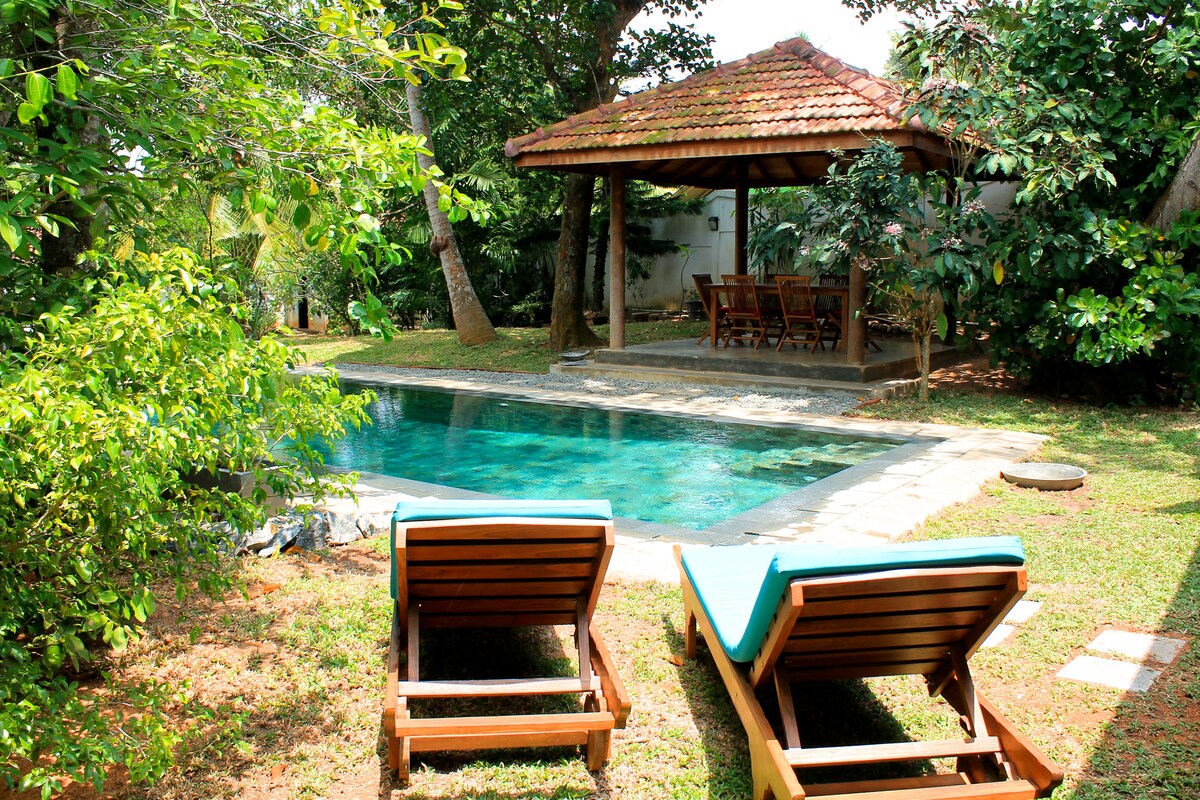 Tere tulemast oma privaatsesse ja rahulikku villasse Mirissas! Ilus 4 magamistoaga villa, mis asub ideaalis vaid 3-minutilise tuk-tuki sõidu kaugusel Mirissa rannast, peamisest supermarketist ja suurepärastest söögikohtadest. See ainulaadne iseseisev villa, mis ühendab rahuliku rahu kaasaegsete mugavustega, pakkudes samal ajal jätkusuutlikke omadusi, pakub unustamatut puhkust peredele ja rühmadele. Naudi terrassilt avanevaid imelisi päikeseloojangu vaateid rahulikele põldudele või lõõgastu privaatses basseinis.