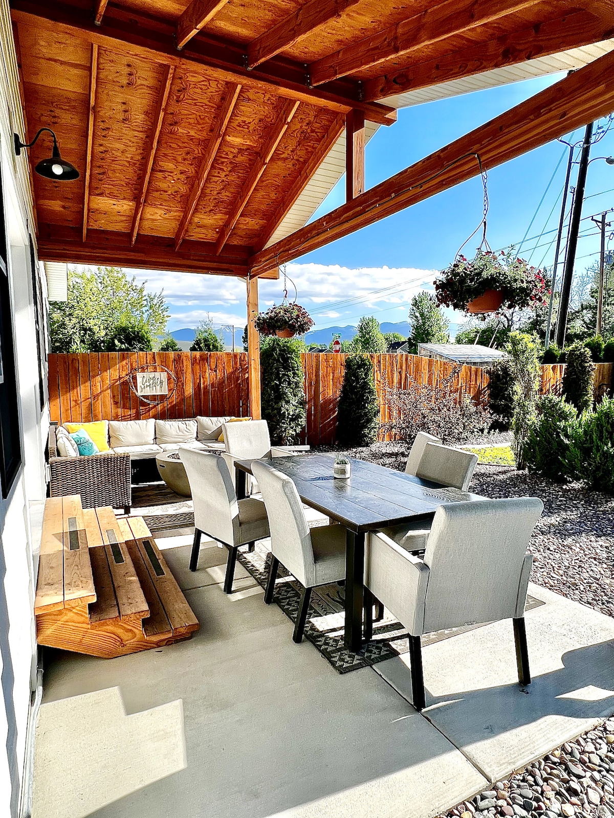 Our Missoula vacation rental has what we love when we travel- location, comfort, & all the amenities. And, it is a 5 min bike ride to downtown, and mins from the beautiful river trail that connects you to the University, trails, or our local ”Good Food Store”. Enjoy a beautiful private patio in the backyard. Bikes available! 1 bedroom with a queen bed + living room sofa bed + air mattress. We are kid friendly. Dogs allowed upon approval with a $75 pet fee.