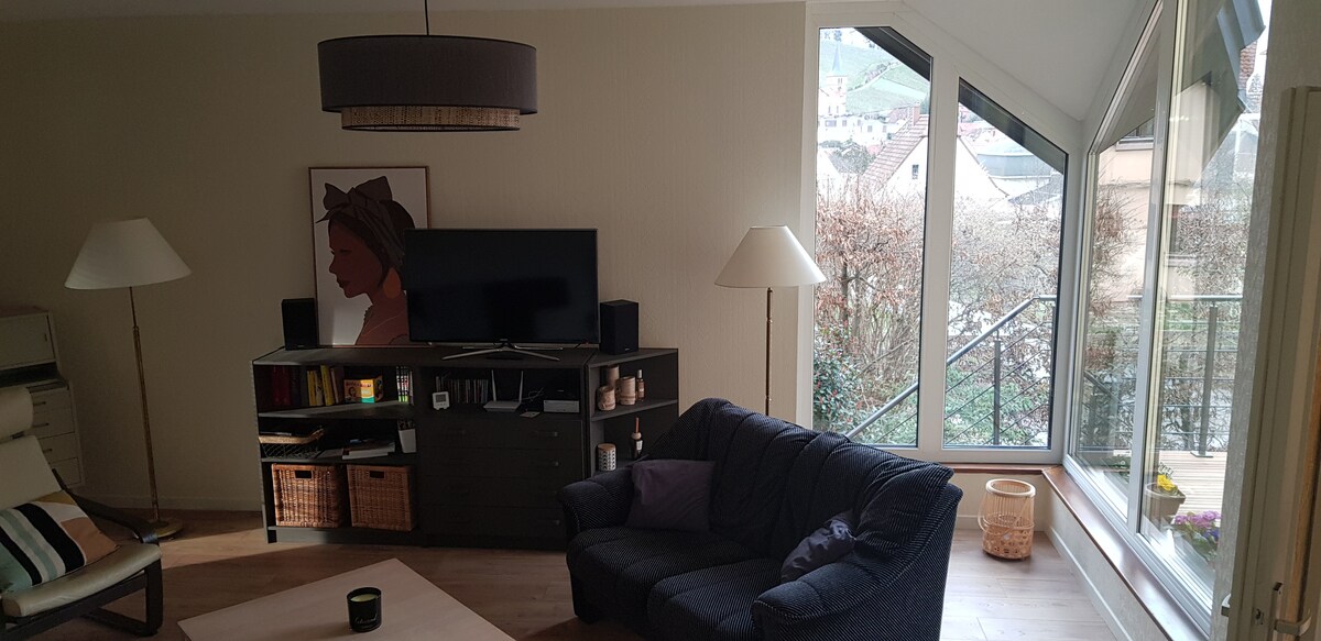 Tänu takistusteta vaated Andlau lossile, kaasaegsele ja avarale pööningukorterile väikeses vaikses korteris. Asub Mont Saint Odile 'i maanteel 1 km kaugusel Barri kesklinnast, 9 km kaugusel Obernaist, 31 km kaugusel Strasbourgist ja 37 km Colmarist, ideaalne majutus paaridele. 200 m kaugusel metsast on loodus sinu jaoks: saad minna matkama, jalgrattaga või suusatama. Sinu käsutuses on kõik igapäevaseks kasutamiseks vajalikud vahendid (pesumasin, triikimine, nõudepesumasin, kapid...)