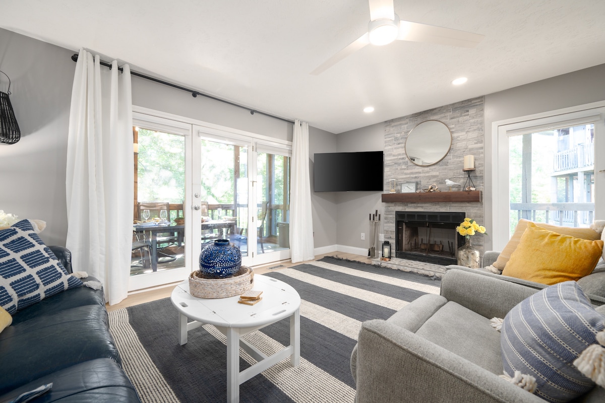 Põgene sellesse värskelt renoveeritud ülemise korteri korterisse (august 2025), kus on täiesti uus mööbel ja sisekujundus - sinu rahulik puhkus Monroe järvel. Ärka alla metsas asuvas kuristikus karjatama hirvede seltsis ja joo kohvi oma privaatsest rõdust, mida ümbritseb looduse vaikus. Sees on valgusküllane ja kaasaegne majutuskoht, mis on mõeldud nii mugavuse kui ka produktiivsuse jaoks. Spetsiaalne töökoht muudab kaugtöö lihtsaks, samas kui hubane elutuba kutsub sind pärast golfi, hapukurgi palli, basseini või järveaega lõõgastuma.