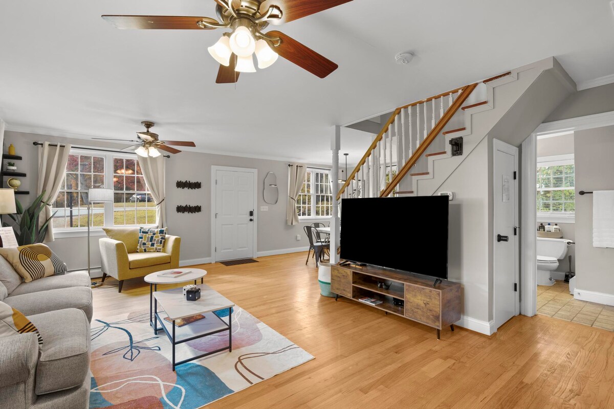 Naudi rahulikku puhkust meie peenelt kujundatud 3BR, 2BA majutuskohas. Koge elegantset avatud kontseptsiooniga põrandaplaani, mida rõhutavad lummavad esemed seinad. Piisav parkimine tänavaväline parkimine ja terrass. Sinu täiuslik puhkusereis ootab selles hoolikalt kujundatud paradiisis. Broneeri kohe lummav põgenemiseks! ✔ Avar 1st Fl BR w/En Suite vannituba ✔ Klassikaline Arcade Game Golden Tee ✔ Avatud eluruum koos funktsiooniseinaga ✔ 5 kaheinimesevoodit ✔ 2 suurt BR-i ülakorrusel koos külgneva vannitoaga ✔ 65-tolline suure ekraaniga Roku nutiteler