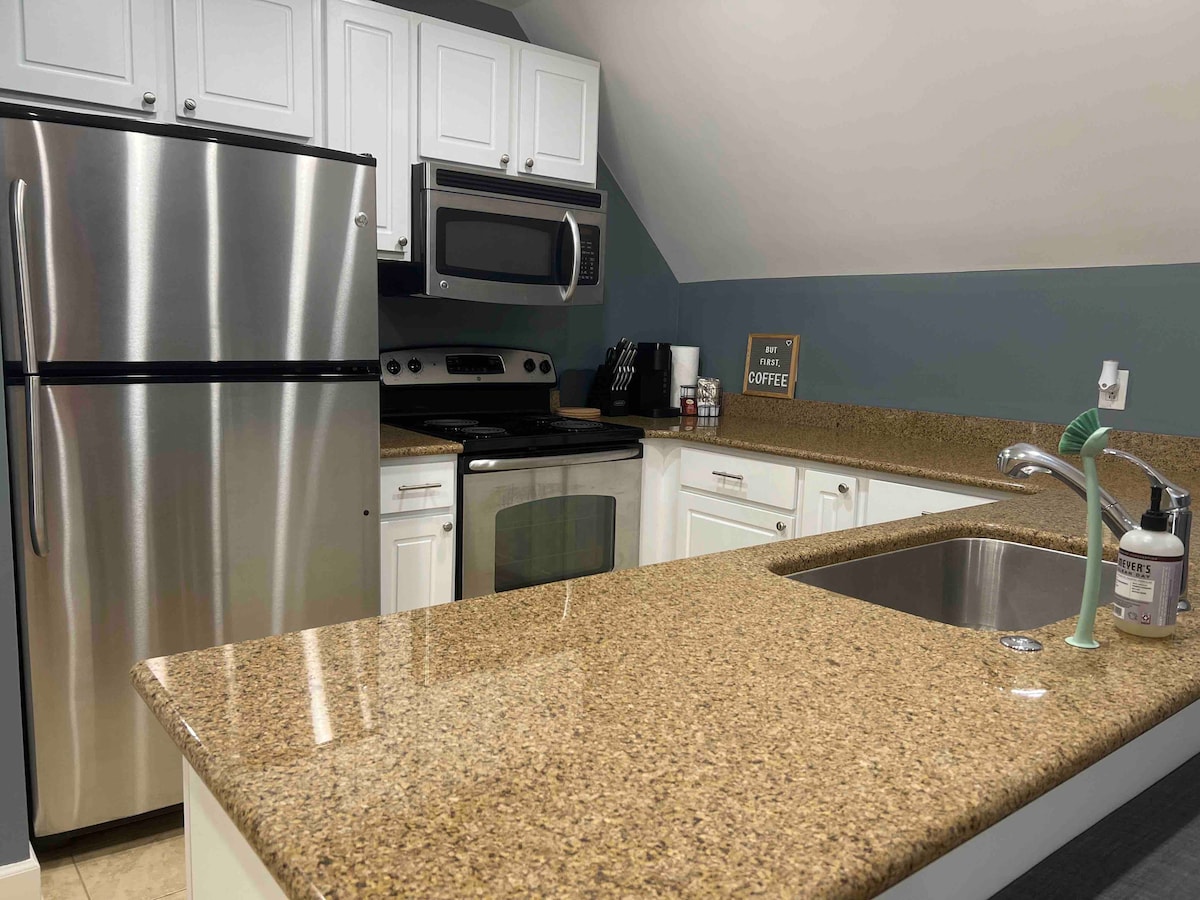 Perfect for travel nurse, or interim housing. Two BR w/queen; 1 bath; full kitchen. Short walk to town or 10-15 minute walk to PRT. Walk to town or rail trail; safe historic neighborhood. Off street parking (rare). Full kitchen. Beautiful space with cotton linens and bath amenities. Note: narrow entry path with 8 steps. Quiet hours 11 pm - 7 am, please.