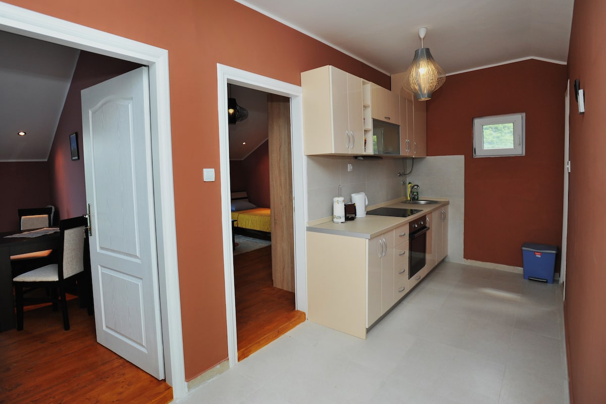 Tere tulemast meie kaasaegsesse ja mugavasse romantilisse korterisse , mille pindala on 60 ruutmeetrit vaid mõne minuti jalutuskäigu kaugusel rannast. Naudi imelist vaadet merele ja Boca lahele. Peresõbralik ja täielikult varustatud, mahutab 6 inimest. Privaatne parkimine on tasuta. Asub Kostanicas, Kotori vanalinna lähedal. Oleme selle koha ettevalmistamiseks pannud palju armastust ja hoolt. Ootame väga sinu peatumist ja muudame sinu peatumise nii palju kui võimalik