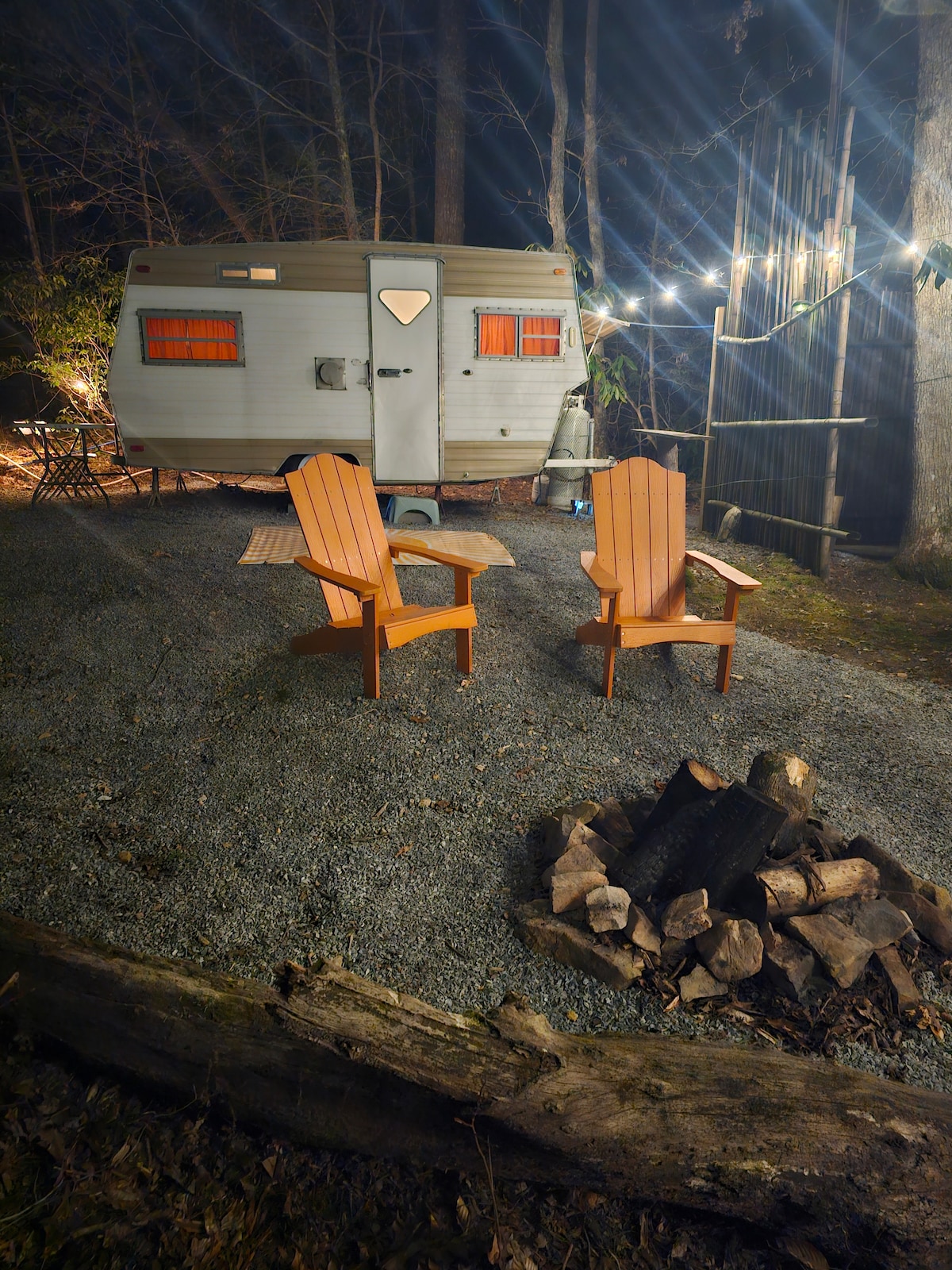 Hubane vanaaegne Airstream, ojapoolne külg, puhkekeskus väljas