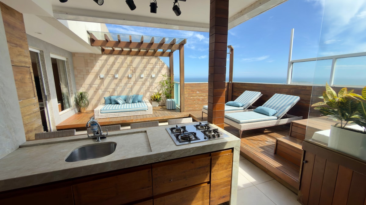 Kata katuseluukiga mullivanni ja merevaatega. Väga ruumikas (65 m2). Parim koht Costa Beachil, Vila Velha parim rand! Täielikult varustatud köök mitmesuguste baaride, kohvrite ja peenete kaussidega. Konditsioneeriga sviit, mugav ja hubane. Lihtsalt parim majutuskogemus Vila Velhas! Sinu peatumine siin on ideaalne! Ainult VENCEM !!!