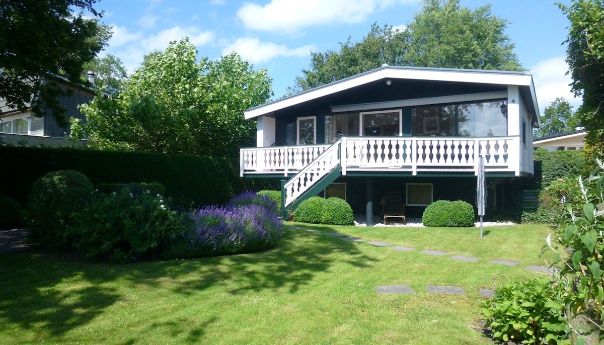 Retro huisje met veranda en tuin nabij strand