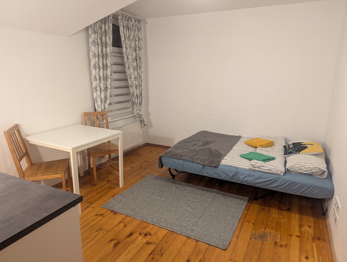 Hubane pööningukorter kauni vaatega vanalinna südames. Mugav 1 või 2 inimesele, ideaalne kodukontoriks. WiFi, varustatud köök, külmik, pesumasin, vann, rätikud. Korter on puhas ja soe. Hea transport, trammi-, bussi-, pkp- ja skm-jaamade lähedal. Oleme kogu aeg saadaval ja aitame oma külalisi. 4. korrus ilma liftita