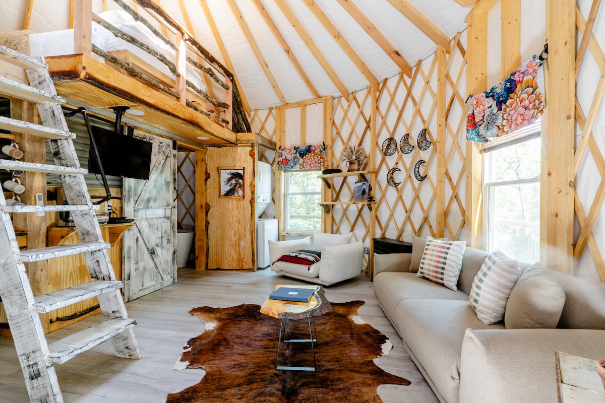 Windsong, mis asub Blue Ridge 'i mägede puu otsas, pigem maja puu otsas kui jurta! Selles jurtas on internet, ülemine terrass mullivanniga ja alumine terrass koos gaasikaminaga. Väljas on tulepuiduga kamin ja jurta on aastaringselt mugav koos minivalgusti, propaanikamina ja generaatoriga. Naudi vanni vannitoas ja jalutuskäiku plaaditud duširuumis. Jurta all ripub võrkkiik ja privaatsuse tagamiseks on erinevatel kõrgustel veel kaks jurtat.