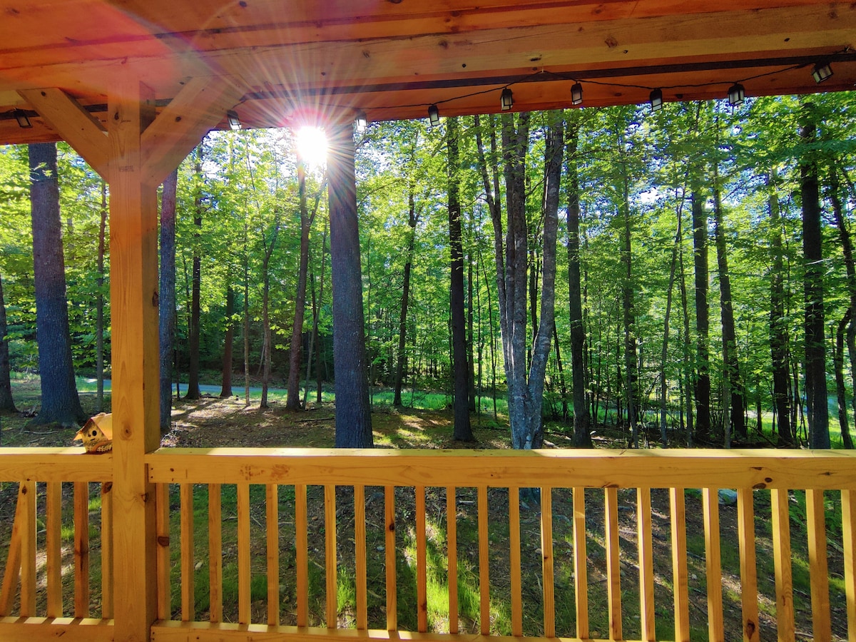 Windsong, nestled in the tree tops in the Blue Ridge Mountains, more of a treehouse than yurt! This yurt has internet, an upper deck w/ a hot tub and a lower deck with a gas firepit. There is an outside firepit with fire wood, and the yurt is comfortable year round with a minisplit, propane fireplace and a generator. Enjoy the soaking tub in the bathroom and the walk in tiled shower. A hammock hangs beneath the yurt, and there are two other yurts at different elevations for privacy.