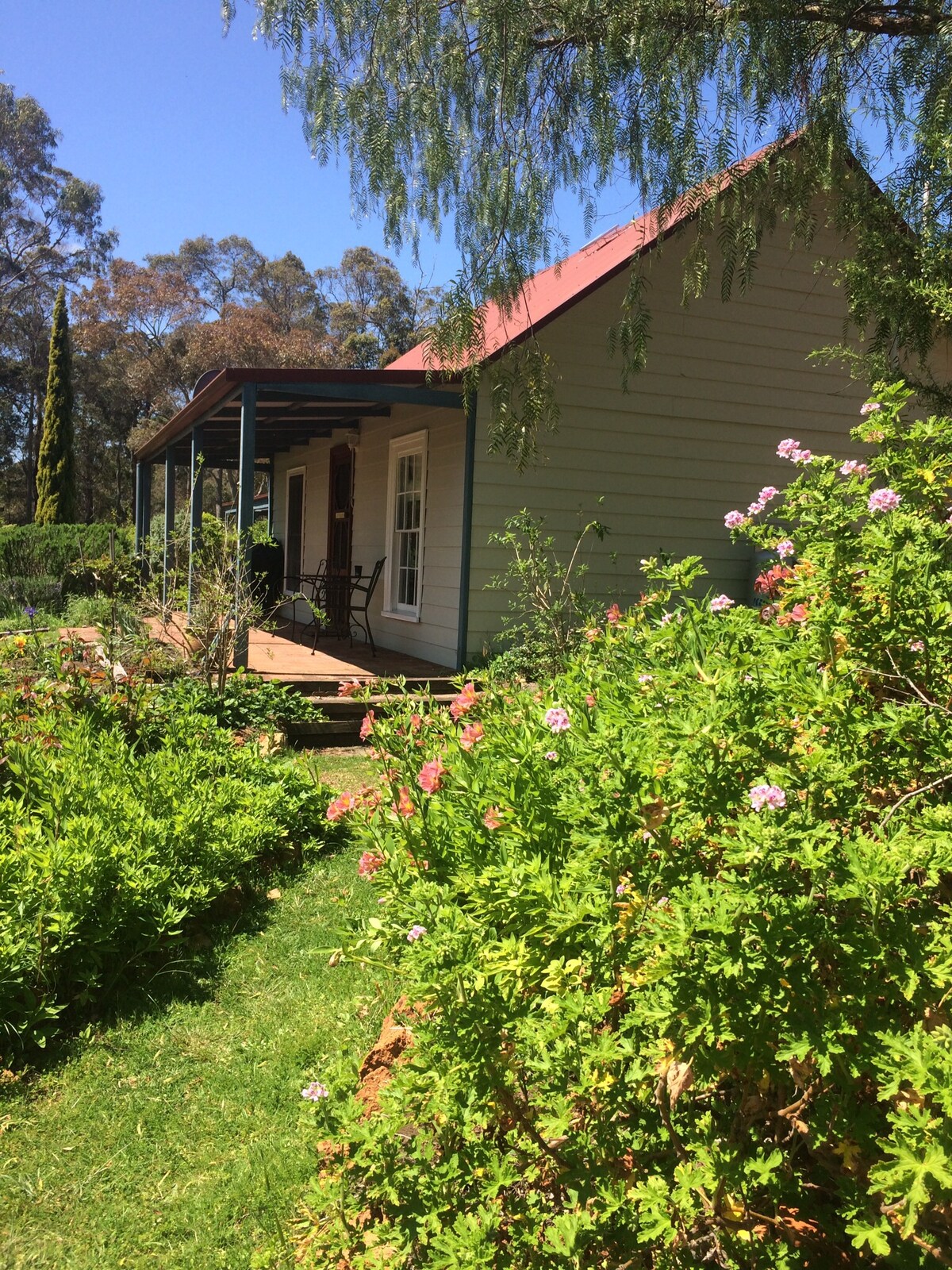 Pretty, light, cosy, comfortable cottage. Set in beautiful cottage gardens and backing on to Gloucester National Park, the walking/biking options are endless. Open plan living area, Smart TV and Wifi. Enjoy the restful bedroom with queen bed, fine cotton sheets, quality bedding and lovely view over the garden. In the luxurious bathroom you can soak in the antique claw foot bath or shower in the seperate cubicle. Heated towel rail, a range of toiletries and Egyptian cotton towels are provided.