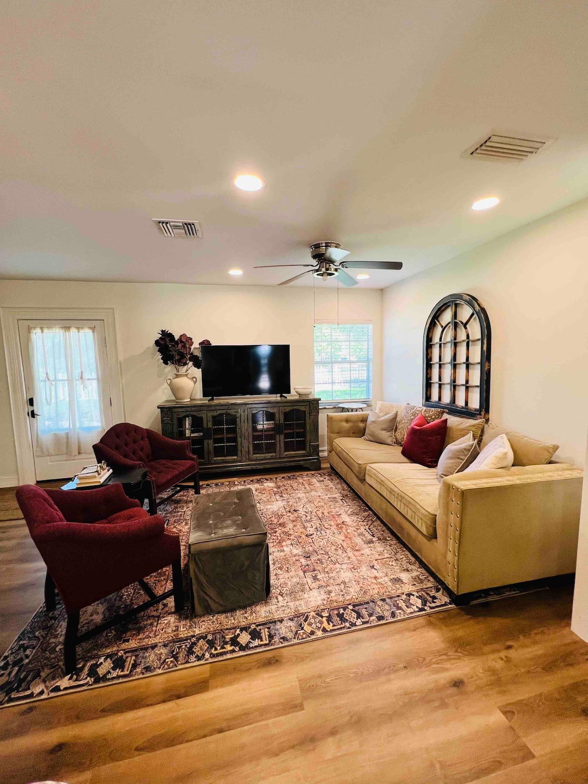 Mugav, puhas ja armas! Ainult 5 min sõit kesklinna. Maja on üks lugu ja asub omapärases naabruskonnas. Sisenedes on avar elutuba L-kujulise diivaniga, kust avaneb vaade ilusale kaasaegsele elektrikaminale ja suurele telerile. Suurepärane paigutus, ühelt poolt on meister ja teisel pool on kaks magamistuba. Köök on täielikult varustatud kõigega, mida vajad. Väljas on veranda ees, suur kaetud lanai taga ja suur tarastatud õu sinu lemmikloomade jaoks.
