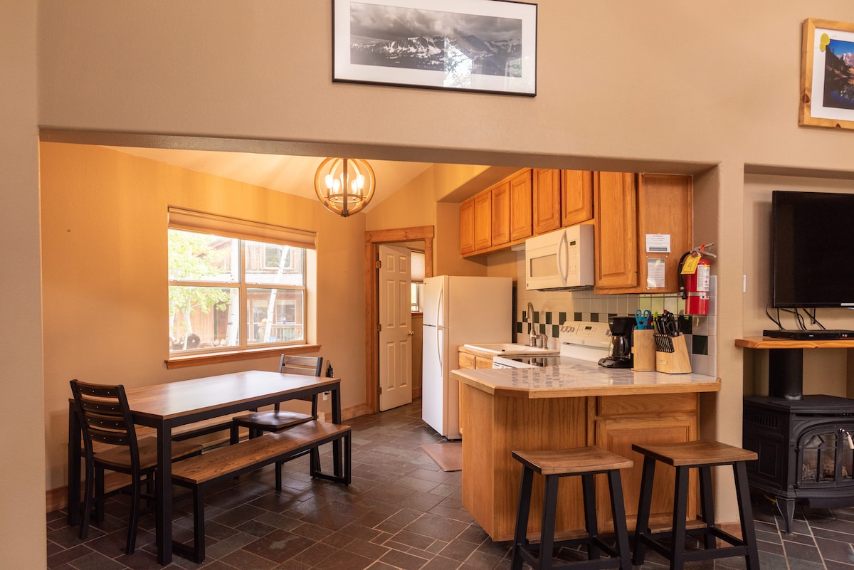 Mt. Columbia on meie suurim eraldiseisev mägisuvila, mis varem oli kontori/omaniku elukoht, selle paigutus on ainulaadne ja asub sissepääsule kõige lähemal. Aiaga piiratud terrass muudab selle ideaalseks lemmikloomadele ja privaatsele mullivannile, kust avaneb vaade oja suunas aspenside aasale. Lõõgastu nahkdiivanil ja lamamistoolil peamises elutoas kauni gaasikamina ja 65-tollise DLP teleri ees.