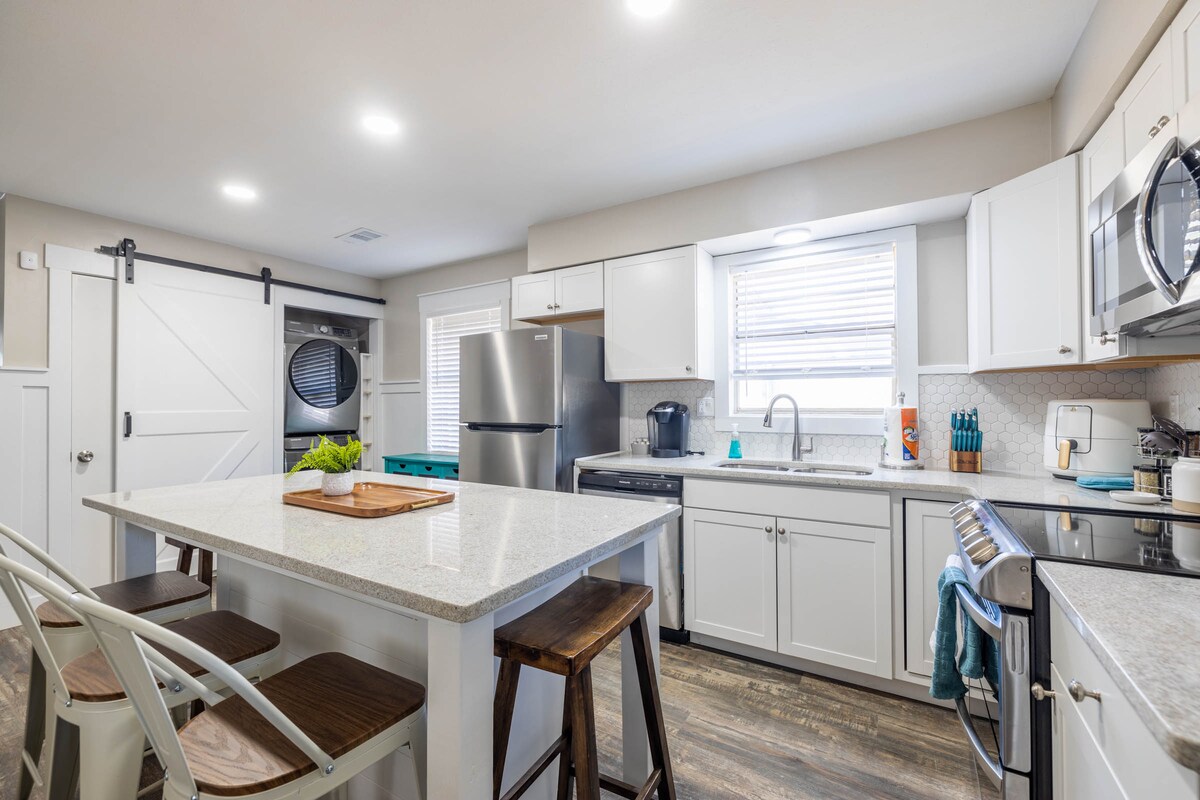 Tere tulemast oma vaiksesse, täielikult sisustatud Columbuse puhkepaika Fort Benningi lähedal. Lõõgastu rahulikus privaatses ruumis, mis on loodud mugavust silmas pidades. Ideaalne peredele, kes tähistavad koolilõpetamist, ajutistele reisijatele, rändavatele õdedele ja pikemaks peatumiseks. Selles lemmikloomasõbralikus kahe magamistoaga majutuskohas on kiire WiFi-ühendus, spetsiaalne tööruum, tasuta parkimine ja rahulik tarastatud tagahoov. Mugavalt paari minuti kaugusel Uptown Columbusest, kohalikest haiglatest, veekeskusest ja Fort Benningist – ideaalne nii lühikesteks külastusteks kui ka pikemaks ametireisiks.