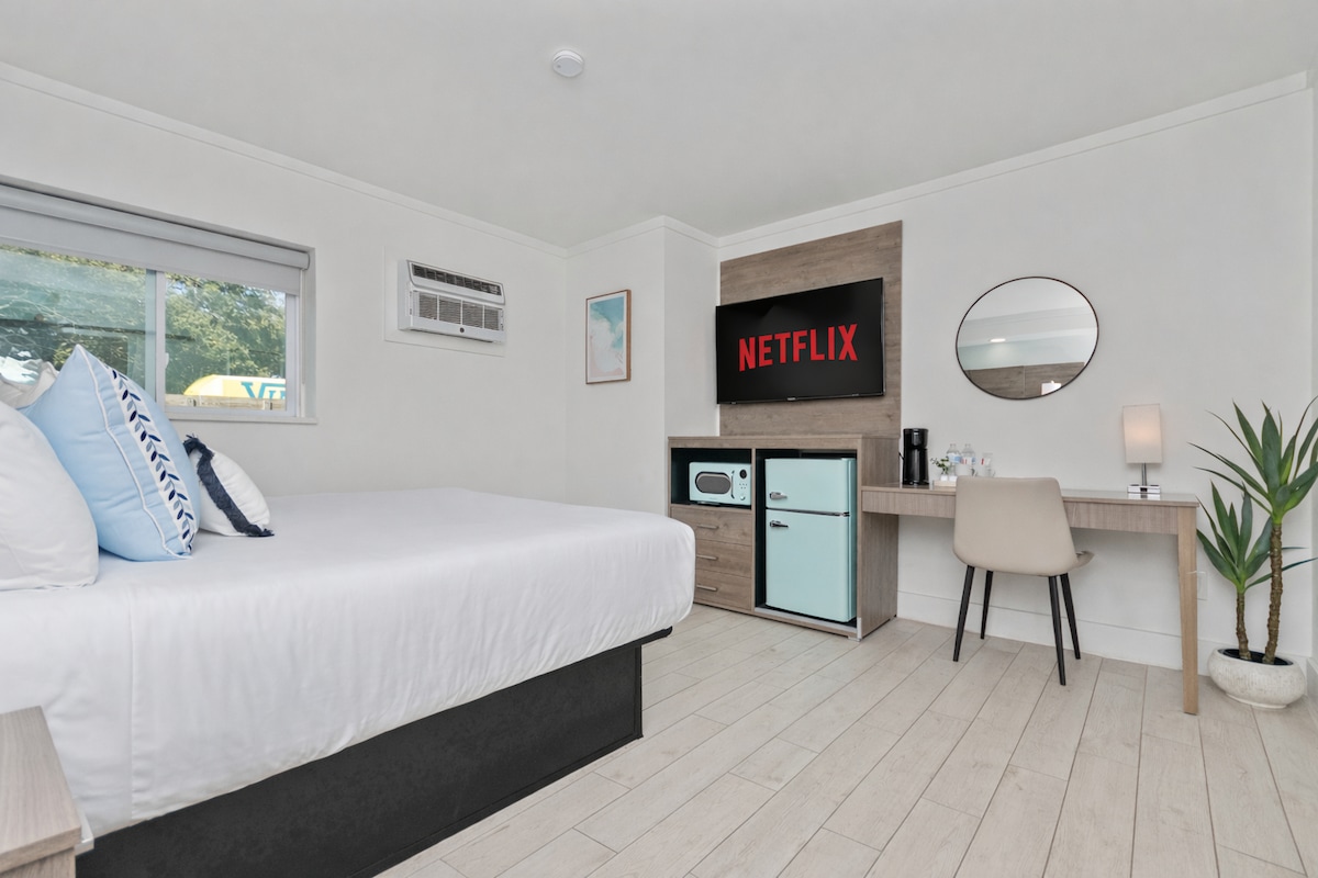 Just steps from the sand, our newly refreshed Fin’s Inn & Suites studio offers the perfect setting for a romantic beach escape. Designed for two, this bright and cozy retreat features upgraded bedding, fast Wi-Fi, and refreshing AC. Take a dip in the sparkling pool, unwind in the game lounge, and enjoy being just a 3-minute stroll to the beach and a 10-minute walk to the lively Boardwalk. The ideal coastal getaway for couples looking to relax, reconnect, and explore.