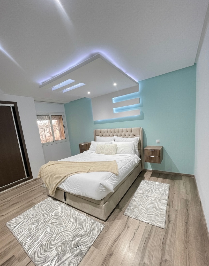 Séjour moderne, calme et confortable à Marrakech 🇲🇦, à seulement quelques minutes de Guéliz et du centre-ville. Salon lumineux 🛋️, quartier calme 🌿, climatisation ❄️, TV avec Netflix 🎬 et connexion fibre haut débit ⚡ Équipements premium, idéal pour un séjour sans souci ✔️ Parfait pour profiter de Marrakech tout en restant proches du centre 📍 Convient aux séjours familiaux, professionnels ou prolongés.