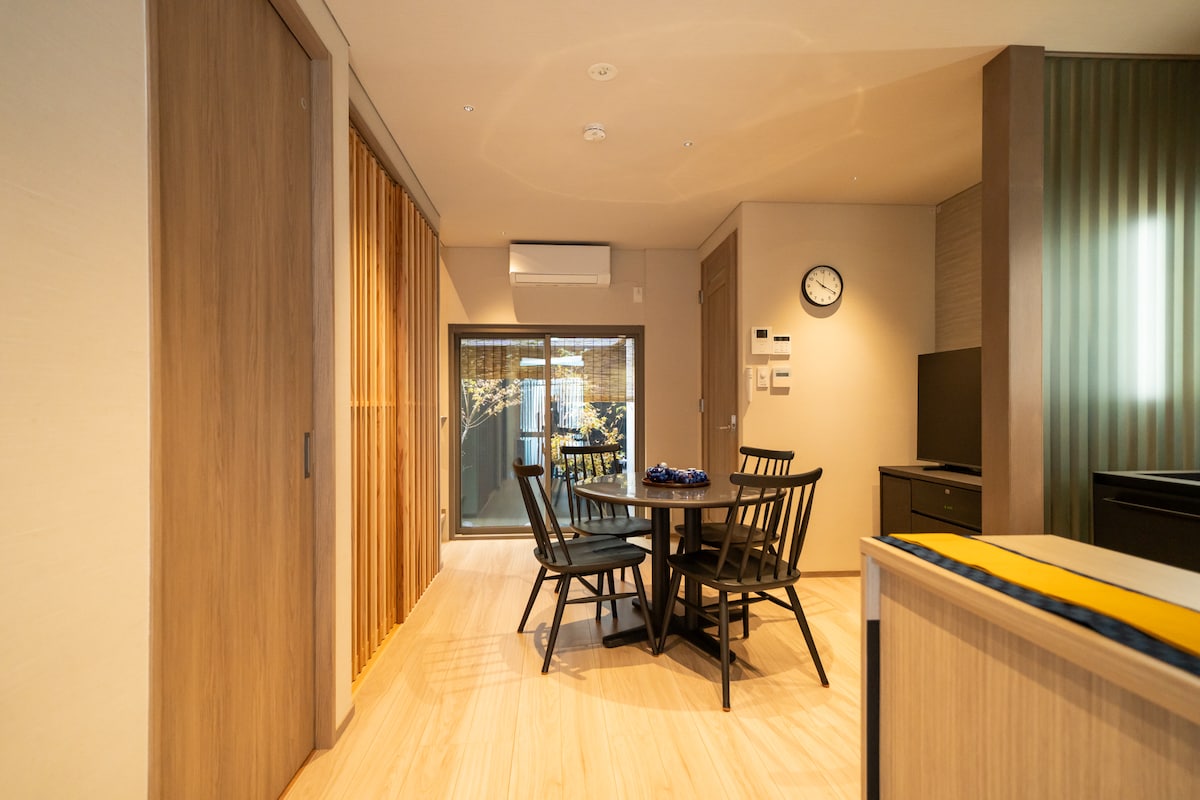 Valgest jõest inspireeritud Naval Blue rõhutab värvi, luues kaasaegse ruumi Jaapani ilusesse.Selles hoones on sisehoov ja köök.Moodne köök, kust avaneb kaasaegsest köögist ja vannitoast otse sisehoovile. 5-minutilise jalutuskäigu kaugusel Shirakawa jõest, mugav transport, elegantne keskkond, elegantne keskkond. Maailmapärandi Heiani pühamu, Kyoto loomaaed, Kyoto rahvuslik kaasaegse kunsti muuseum, Yasaka pühamu jne on kõik jalutuskäigu kaugusel.Iidne jõe poe tänav on hotellist vaid mõne sammu kaugusel.