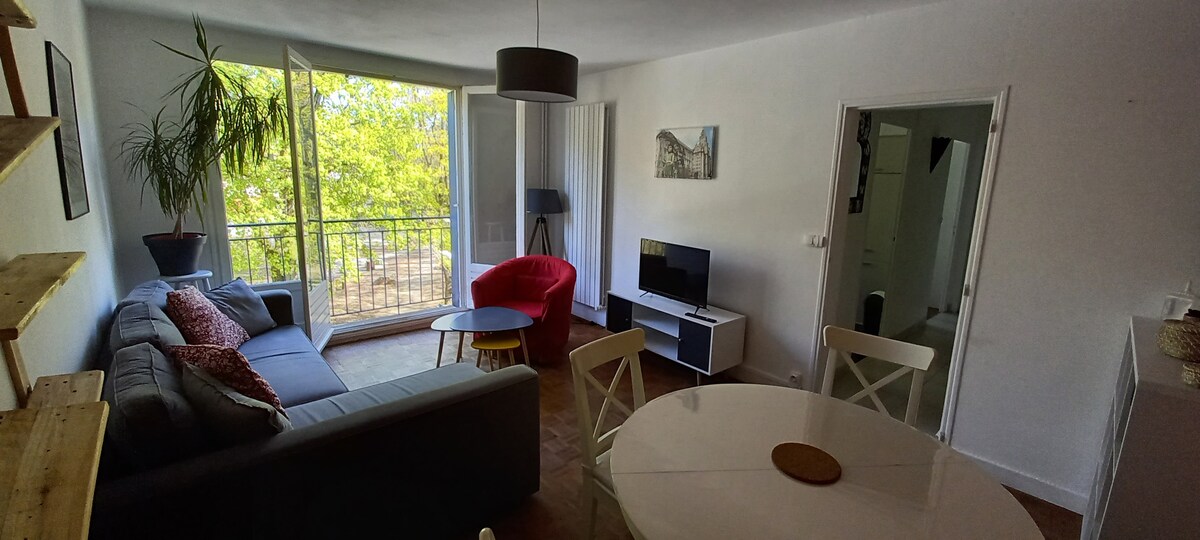 Lõõgastu selles vaikses ja stiilses majutuskohas. Loire 'i vaade, kesklinn, 5 minuti kaugusel rongijaamast ja Loire' i nõlvade lähedal jalgrattaga, Korter 55 m2, 2 magamistuba, köögiga varustatud ja sisustatud, kliimaseade, kõik mugavused