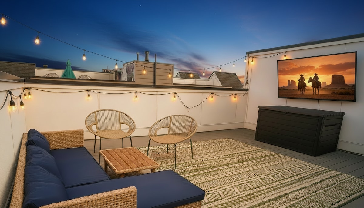 Katuseterrassil mullivann ja mängud Nashville'i kesklinna lähedal