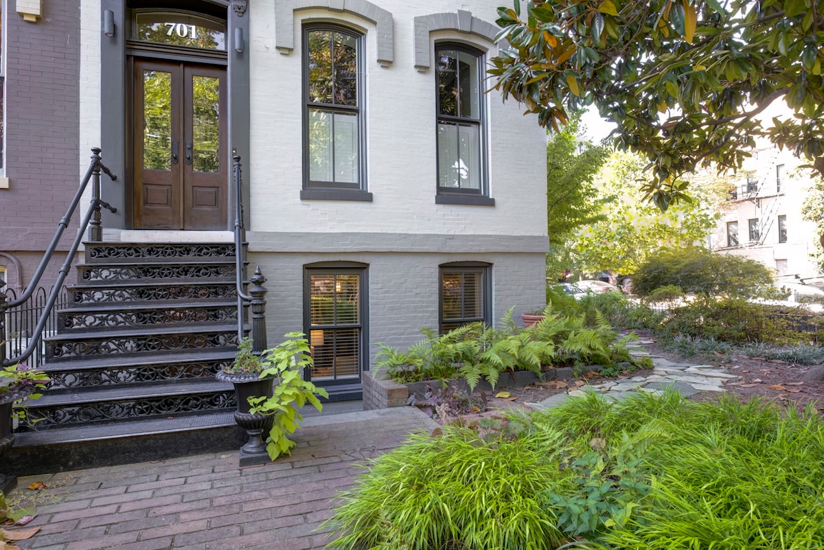 Tere tulemast oma Capitol Hill 2 bdrm ridaelamu oaasi! Jalutuskäigu kaugusel on Capitol, National Mall, Michelini restoranid, metroojaam, idaturg, pargid, Trader Joes ja palju muud! 2 luksuslikku magamistuba padjapüüri hotelli madratsitega, 65-tolline 4K-teler, 1 GB kiirus wifi ja massiivne luksuslik kõrgsurve dušš! Diivan muutub külaliste jaoks kolmanda voodi jaoks täisvoodiks! Köögis on kvaliteetsed seadmed, suur uus pesumasin, privaatne tagaõu välimööbliga ja varjuga ning viietärniline supermajutaja!