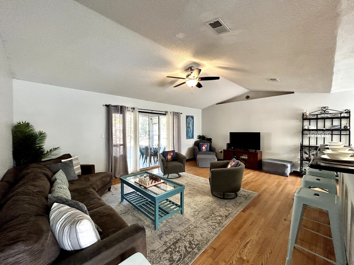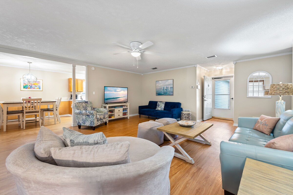 Broneeri oma mälestused selles mugavas asukohas! 10 minutit Navarre rannani; see ühekorruseline 2060 ruutjalga kaasaegne paigutus hoiab kõiki turvaliselt kogu puhta ruumiga. Mahutab 6 inimest ja kuni 8 istekohtade jaoks suurepäraste pereõhtusöökide jaoks. 4 magamistuba ja vannituba on ühendatud suure võlvitud avatud köögi/suure toa elutoaga. Privaatselt metsastatud 0,50 aakri suurune majutuskoht otse East Bay linnaosas, kust pääseb kiiresti sisseoste, golfi, õlletehaste ja valge liiva juurde, muudavad selle majutuskoha pärast pikka seikluslikku päeva lõõgastumiseks kesksel kohal.