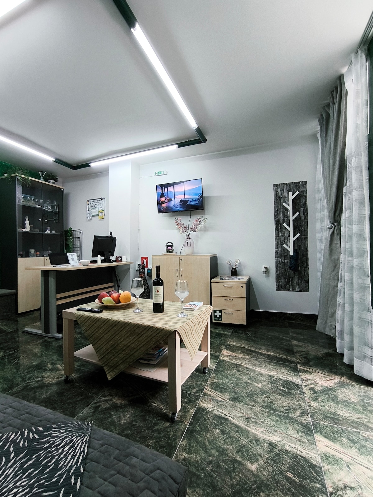Täielikult renoveeritud majutuskoht, eriti valgusküllane ja kaasaegne, ilusas neoklassikalises hoones Metsi (Pagrati) linnaosas. See asub Kallimarmaro (Panathenaic Stadium) kõrval ja väga lähedal Ateena kesklinnale. Väga lähedal kauplustele ja kohvikutele, sest see on Varnava väljakust vaid mõne meetri kaugusel. Toas on kaheinimesevoodi, kirjutuslaud, laud, satelliitantenniga televiisor, külmik ja wifi.