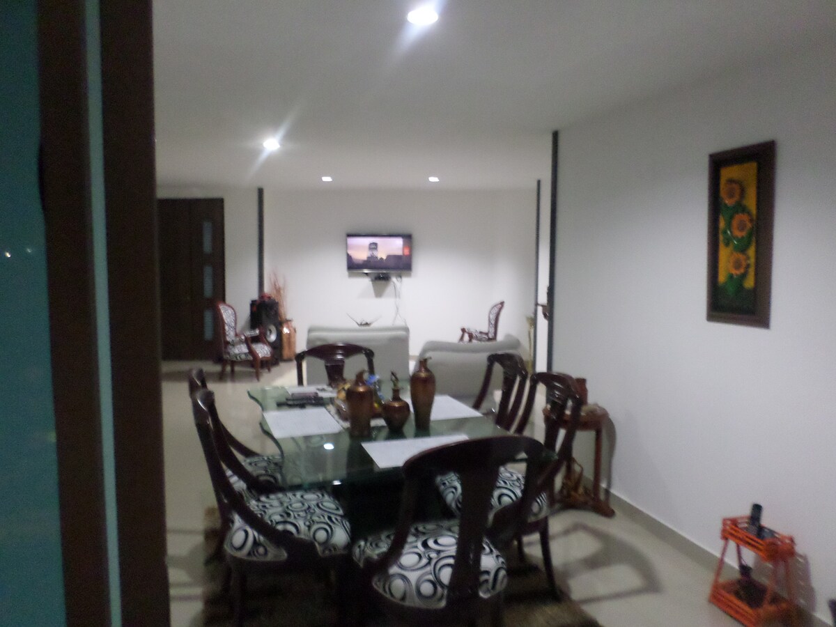 Luksuslik korter esimesel korrusel, koos kliimaseadmega Goya, Cra 5 No 36 30 Sur Mahutab 6 inimest Leiad: ✓Asub esimesel korrusel ✓Kliimaseade elutoas ja ventilaatorid magamistubades ✓2 teler ✓3 tuba ✓3 voodit ✓ Külmik, pesumasin , pliit ✓Autovarjualune ✓Bassein (kolmapäevast pühapäevani) ✓ Asukoht Unicentro kaubanduskeskuse lähedal Iseseisvalt ✓ saabumine ✓ Alaealised peavad viibima koos Eda vanema pereliikmega