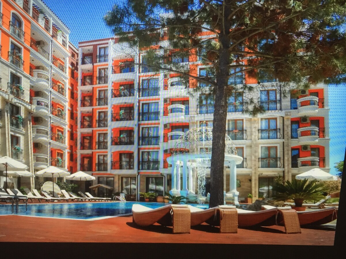 Sveti Vlas. Uus Sorrento Sole Mare kompleks ilusa territooriumi ja basseiniga. Korter on varustatud kõigi mugavaks peatumiseks vajalike mööbli ja seadmetega. 2 voodit 160*200 Riidekapp, söögilaud, föön, triikimislaud ja triikraud, nõud jne. Suur rõdu Meri on 5–7 minuti jalutuskäigu kaugusel. Kaupluseni 3 minutit Restoranid, kohvikud, jõusaal, apteek on jalutuskäigu kaugusel. Kui peatud kauem kui kuu, tuleb maksta elektri- ja veearveid. Koristamine peatumise ajal ja voodipesu vahetus lisatasu eest.