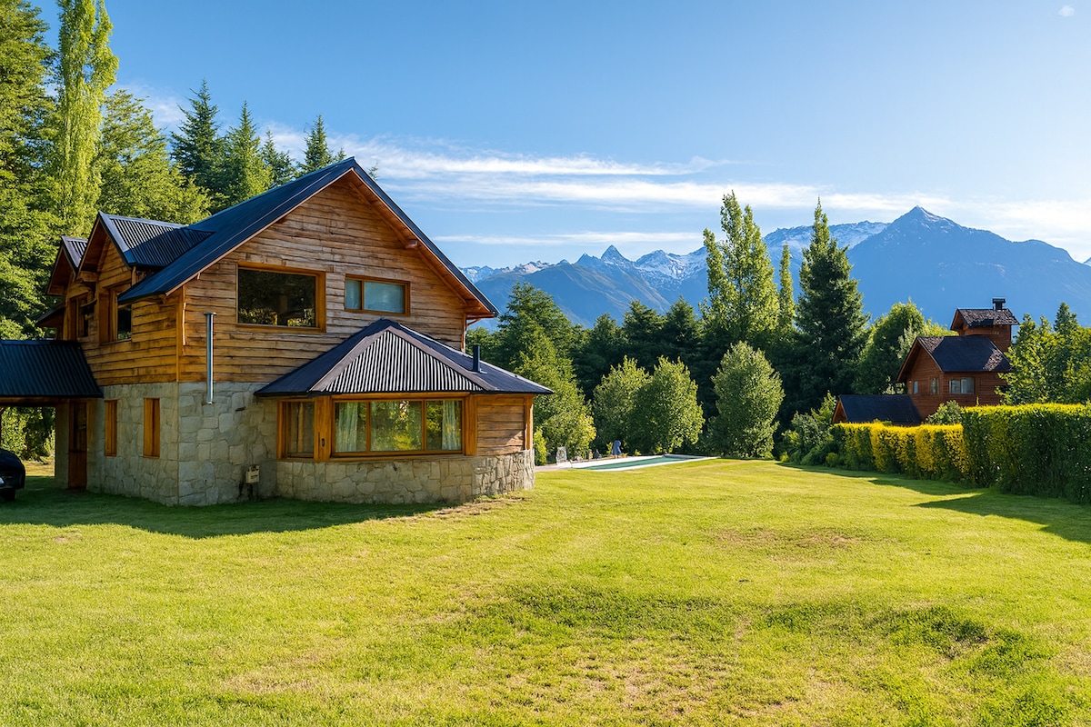 Encantadora Casa Patagónica con Pileta climatizada, jacuzzy y vistas a la Montaña Disfrutá una estadía única en esta casa de estilo patagónico, rodeada de naturaleza. Con su arquitectura en madera y piedra, grandes ventanales, espacios amplios y cómodos, jacuzzy y una piscina privada, es el lugar perfecto para relajarte y conectar con el paisaje. La propiedad ofrece amplios espacios verdes y está ubicada en un entorno rodeado de bosque y a minutos de los principales puntos turísticos.
