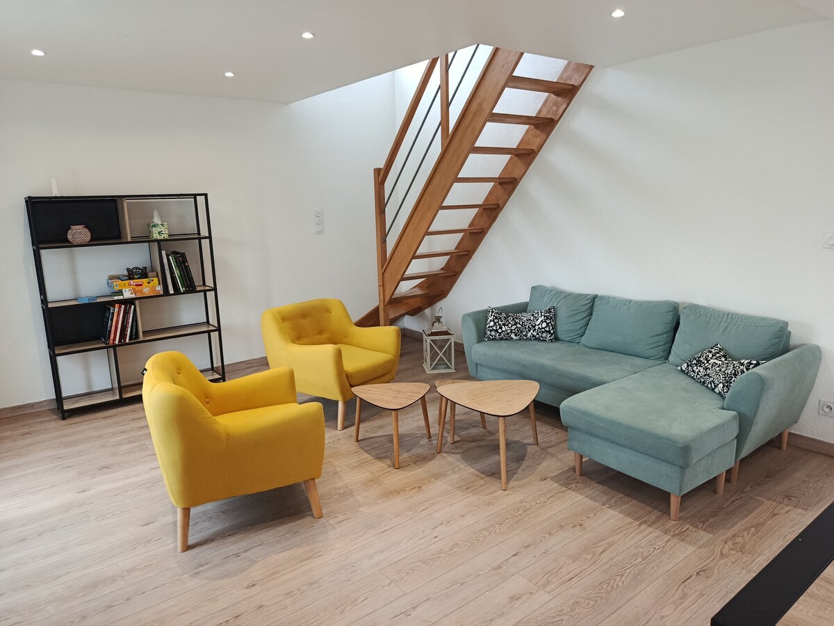 Tule ja veeda unistuste öö armastatud inimesega selles vaikses ja stiilses 50 m2 majutuskohas. Loodame siiralt, et naudid seda kohta. Sinu peatumise võtmesõnad on armastus, lõõgastumine ja puhkus. Selle jaoks ootab sind spaavanni ja dušiga tuba. Teises toas saad nautida tõelist elutoaga kööki. Me asume Dole 'is, mis on võluv gastronoomiline ja kultuuriline Jura linn