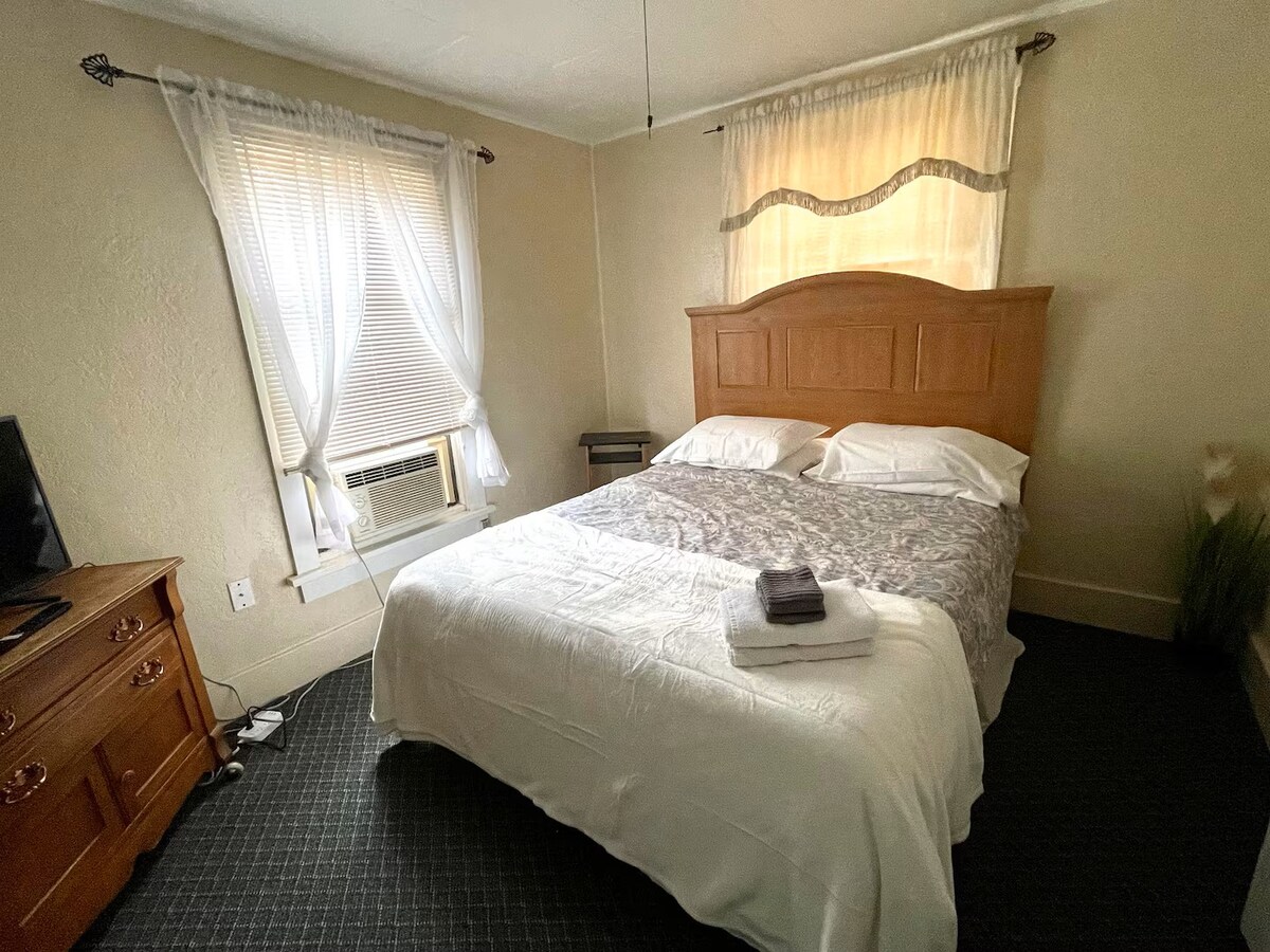 Siruta end selles hubases 1BR-sviidis, kus on lai kaheinimesevoodi, vannituba ja mugav elutuba magamisdiivani ja nutiteleriga. Võta bistroolaua ääres kohvi või lõõgastu raamatuga. Sisaldab minikülmikut, mikrolaineahju ja Keurigi. Vaid mõne sammu kaugusel New Mexico avarast taevast ja väikelinna iseloomust. Sa ei taha sellest võluvast, ainulaadsest kohast lahkuda.
