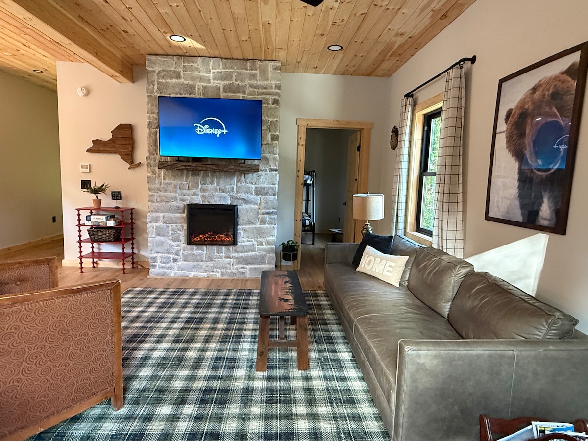 Hinda Adirondacki ilu ja naudi hoolikalt sisustatud kodu mugavust, mis soodustab lõõgastumist. Esimesel korrusel on avatud kontseptsioon ning avar köök, söögituba ning külalislahke elutuba, kus on kõrge katedraali lagi ja kamina vahetükk. Hubane ja loe lõkke ääres, vaata telekat või mängi lauamänge. Päike loojub, naudi lõõgastavat leotamist ülemõõdulises mullivannis ja seejärel pensionile ühte neljast magamistoast ülakorrusel.