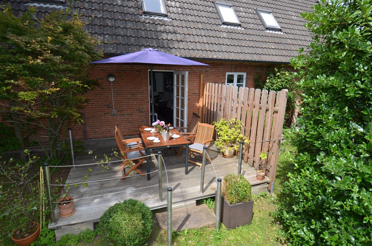 Valgusküllane Põhjamaade stiilis ühe magamistoaga korter teisel korrusel, kus on päris puidust parkett, päris puidust parkett, varustatud köök, varustatud köök, vannituba, samuti lõunapoolne rõdu rannatooliga. Wenningstedti südames küla tiigi vahetus läheduses on palju poode (pagariäri allkorrusel majas, hõrgutised vahetus läheduses) ja suurepärased restoranid. Gosch ja rand on jalutuskäigu kaugusel (5-10 minutit)!Bussipeatus on otse esiukse taga. Saabumine on alates kella 16.00 -st ja lahkumine kell 22.00