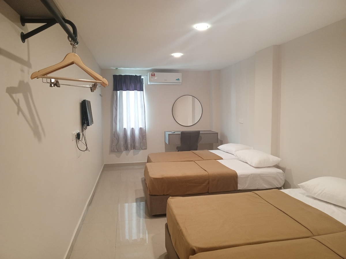 欢迎入住位于Nilai市中心的舒适现代双单床客房!这间宽敞明亮的房间配备两张舒适的单人床,非常适合朋友、家人或商务伙伴入住。房间内设有空调、免费高速WiFi、平板电视(支持Netflix)、电热水壶、免费瓶装水以及私人浴室(带热水淋浴和基本洗浴用品)。每日提供客房清洁服务,确保您的住宿干净整洁。 位置超级便利: 正对AEON商场(步行即达),里面有超市、餐厅、Starbucks和各种商店 附近有Giant和Lotus超市、众多本地美食选择 距离KLIA和KLIA2机场仅约15分钟车程 靠近Sepang国际赛车场(F1赛道)、Nilai大学区和MesaMall 免费停车位可用,24小时前台服务 无论您是短期出差、探亲还是中转机场,这都是Nilai最佳的便捷住宿选择。安静舒适的环境,让您在忙碌行程中好好休息! 重要提醒: 根据马来西亚政府规定,持有外国护照的客人需在前台额外缴纳旅游税(Tourism Tax)RM10每间房每晚(马来西亚公民及永久居民免除)。此税款将在入住时现场收取,不包含在Airbnb房费中。 期待您的到来!如果有任何问题,随时消息我哦~