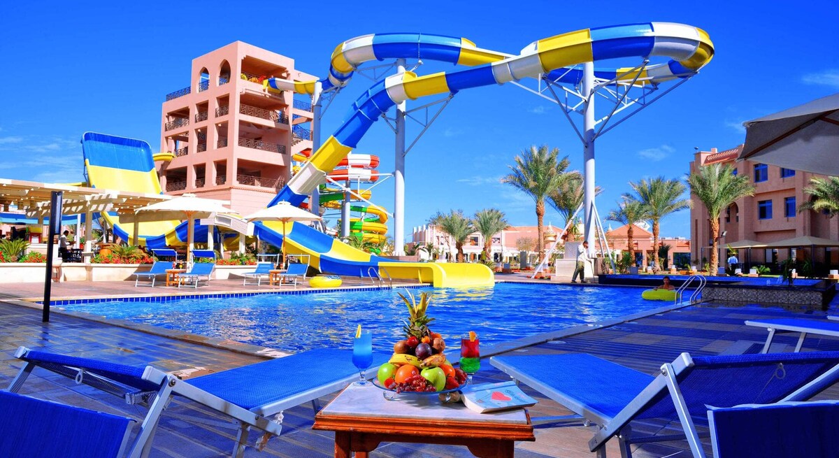 A stylish beachfront escape with a private reef, swim-up rooms, multiple pools, kids’ aqua park, spa, and global dining. Enjoy live entertainment, beach sports, and water activities, with Mini Egypt Park, Makadi Bay Beach, and Sahl Hasheesh Old Town just minutes away.