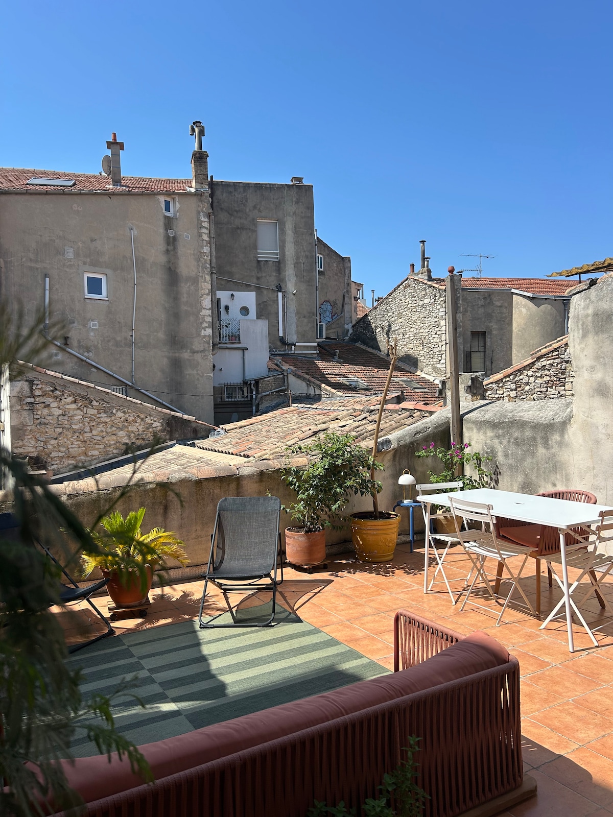 Nîmes 'i Îlot Littré linnaosa südames. Naudi ajaloolist kesklinna jalgsi. Oma vaatega Nîmes 'i katustele on korter väga valgusküllane ja ennekõike konditsioneeritud, et tulla toime lõunapoolse kuumusega. 3. ja ülemisel korrusel (liftita) on valgusküllane loft vaiksel tänaval 2 sammu kaugusel Maison Carréest, Jardins de la Fontaine 'ist (ja selle Tour Magne' ist) ja Les Halles 'ist. 10-15 min jalutuskäigu kaugusel Arenase ja Nîmes Centre 'i raudteejaamast.