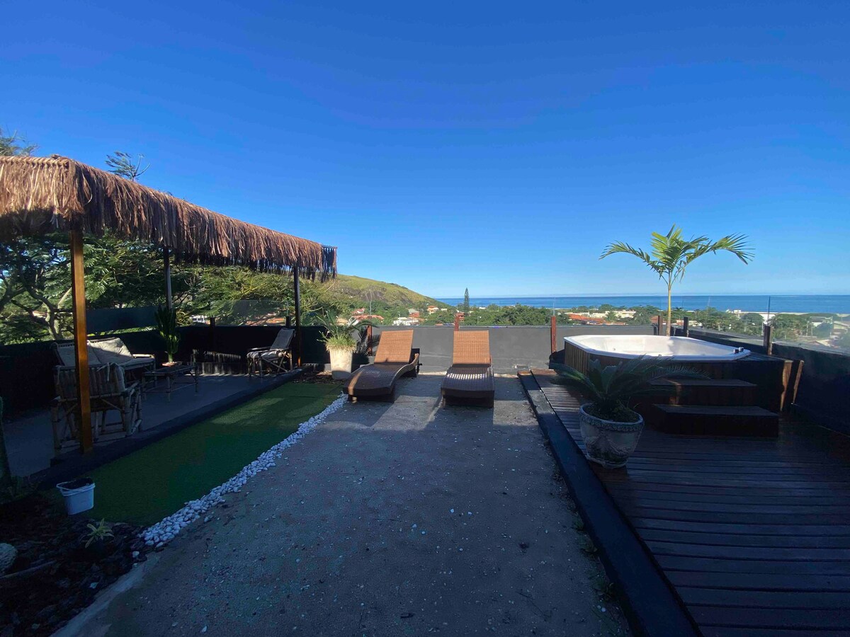 Meie Itaipuaçu lähedal asuv maja ehitati 2013. aastal Itaocaia rohelises orus asuvale 2400 m2 suurusele krundile. Kolme magamistoaga (millest üks on sviit), avatud köögiga, kus on suur looduskivist baar, kahe vannitoa, basseini, jalgpalliväljaku ja suure grillialaga eraldiseisev maja vaatega Itaocaia kaljule. Lähim rand on 10-minutilise autosõidu kaugusel, trendikas surfajate rand Itacoatiara on 20-minutilise autosõidu kaugusel, Maricá 15 ja Rio 60 minuti kaugusel. Ideaalne koht looduse nautimiseks.