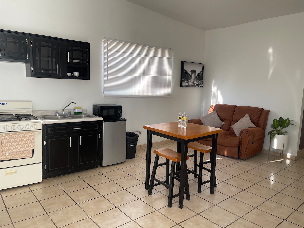 Studio Loft south of Nogales Sonora, located in Residencial with controlled access, 3 min. from the new IMMS, 15 min from USA, 10 min. from the Consulate & del Centro comercial. Teisel korrusel asuvas majutuskohas on WIFI, eriti lai kaheinimesevoodi, varustatud köök, teler, külmik, minijagamine, küte, laeventilaator, dušš kuuma ja külma veega, täielik vannituba, aknad ja rõdu, iseseisev juurdepääs, lisaks elektrooniline lukk. Parkimine elamukompleksis.