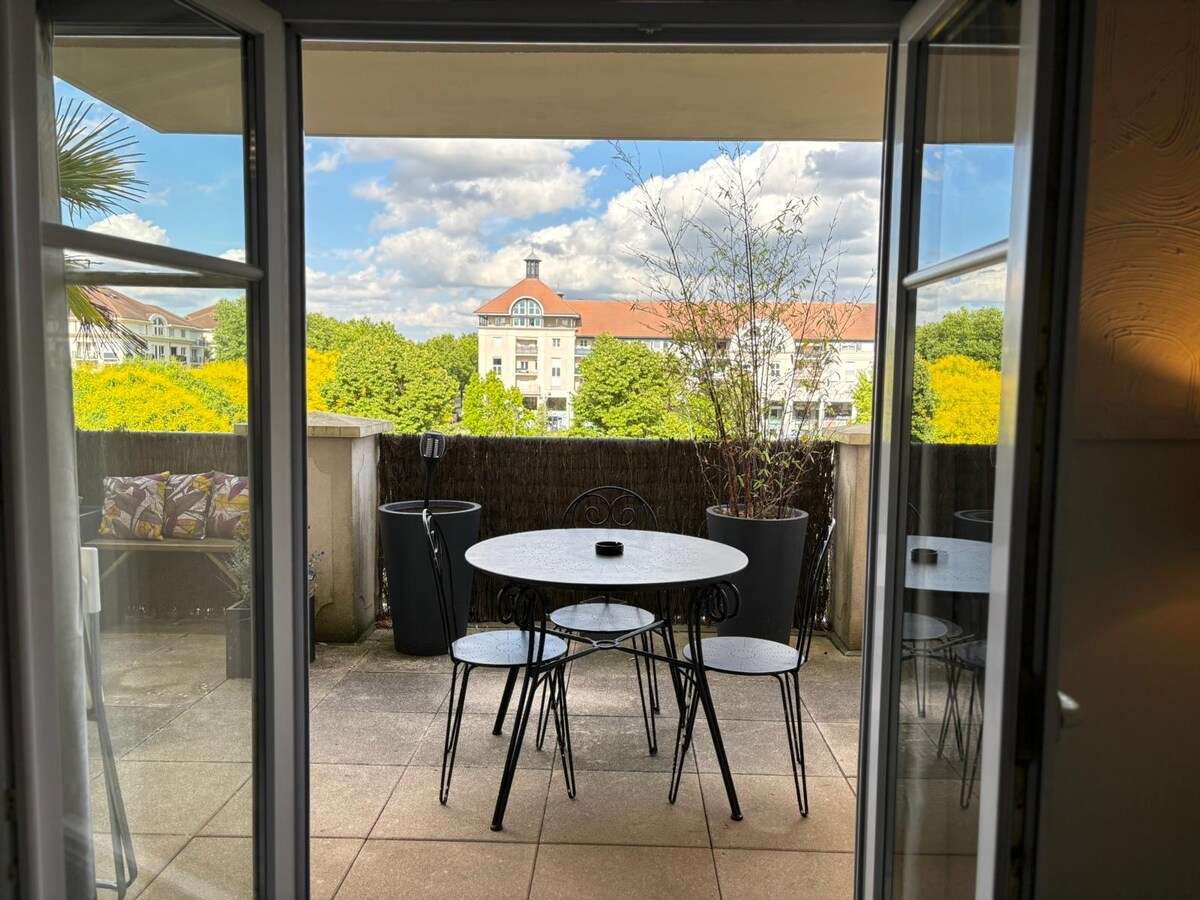 Uus majutus 2 sammu kaugusel Pariisi Disneylandi pargist! Ela neo artdeco stiilis naabruskonnas, kõik poed jalutuskäigu kaugusel, Val d 'Euroopa südames, säästes väärtuslikku aega, et oma peatumist maksimaalselt ära kasutada. Eelistame sinu mugavuse ja heaolu tipptasemel voodipesu ja pehmete värvidega. Disney, loodusküla, küla org, jalutuskäik looduses, ela kohalikult, et nautida ainulaadset elamust. Pluss, vaata terrassilt pilguheitu:-)