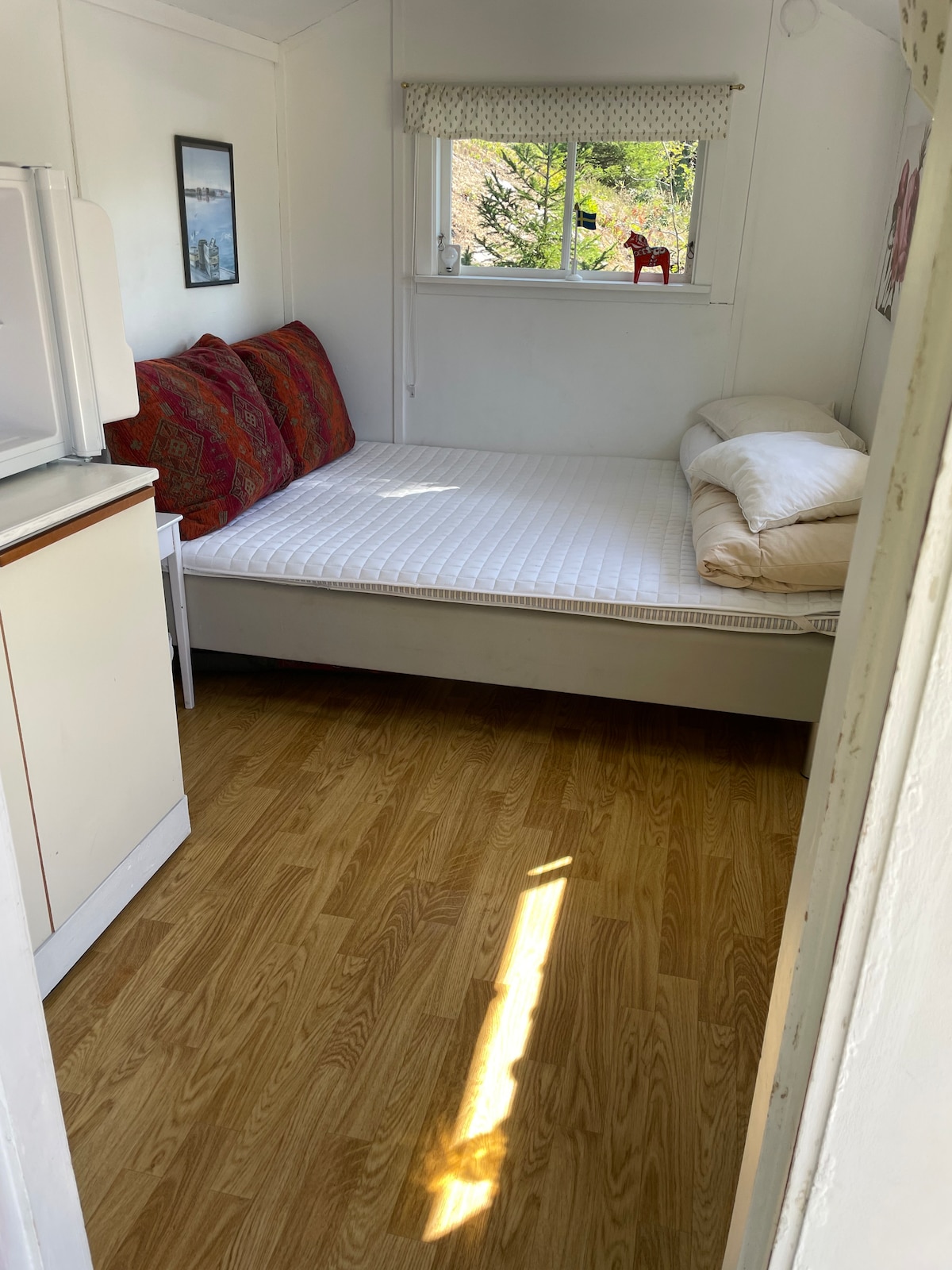 Siin saad elada Stockholmi saarestikus otse mere ääres asuvas majas. Stockholmi kesklinnast vaid 30-minutilise autosõidu kaugusel. Majas on magamistuba, kust avaneb merevaade kahes suunas. Maga avatud aknaga ja kuule laineid. Elutuba täielikult varustatud köögi, diivani ja tugitoolidega. Terrass kahele poole, kus on nii hommiku- kui ka õhtupäike. Maja kõrval on väike kivirand, 20 meetri kaugusel majast on ka puuküttega saun, mida saab laenata. Ujumissild on majast 100 meetri kaugusel.
