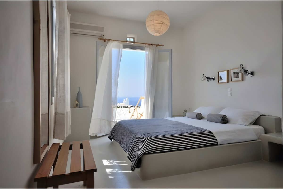 Elegantne korter Tinose linna lähedal teiste korterite kompleksis. See koosneb kahest korrusest, mille esimesel korrusel on suur terrass ja rõdu suurepärase vaatega teisele korrusele. Majutuskoht on ehitatud ja kaunistatud mere ääres Küklaadi arhitektuuris.